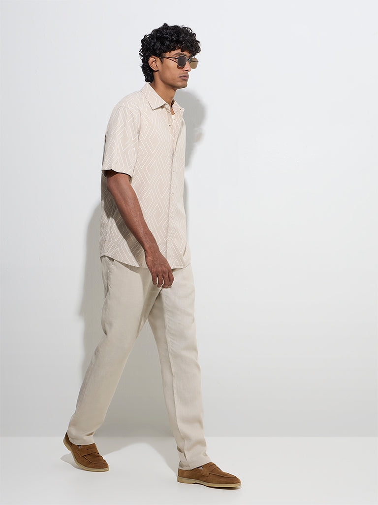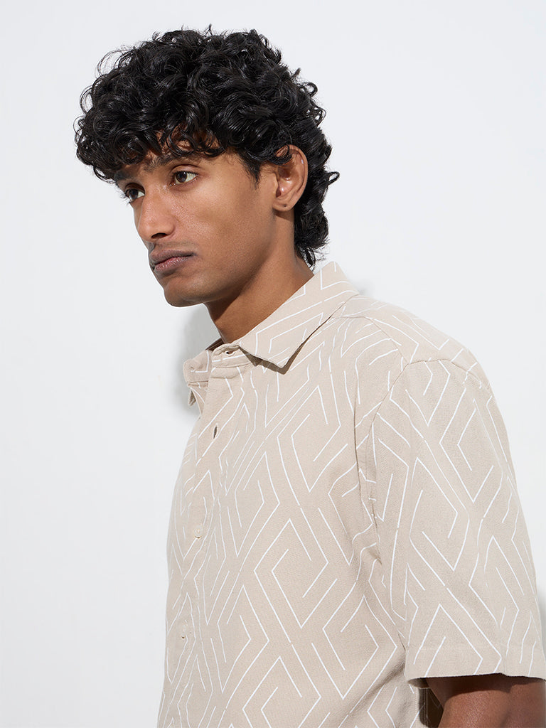 Ascot Beige Geometric Pattern Relaxed-Fit Shirt