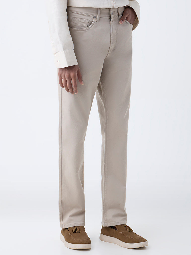 Ascot Beige Relaxed-Fit Mid-Rise Jeans