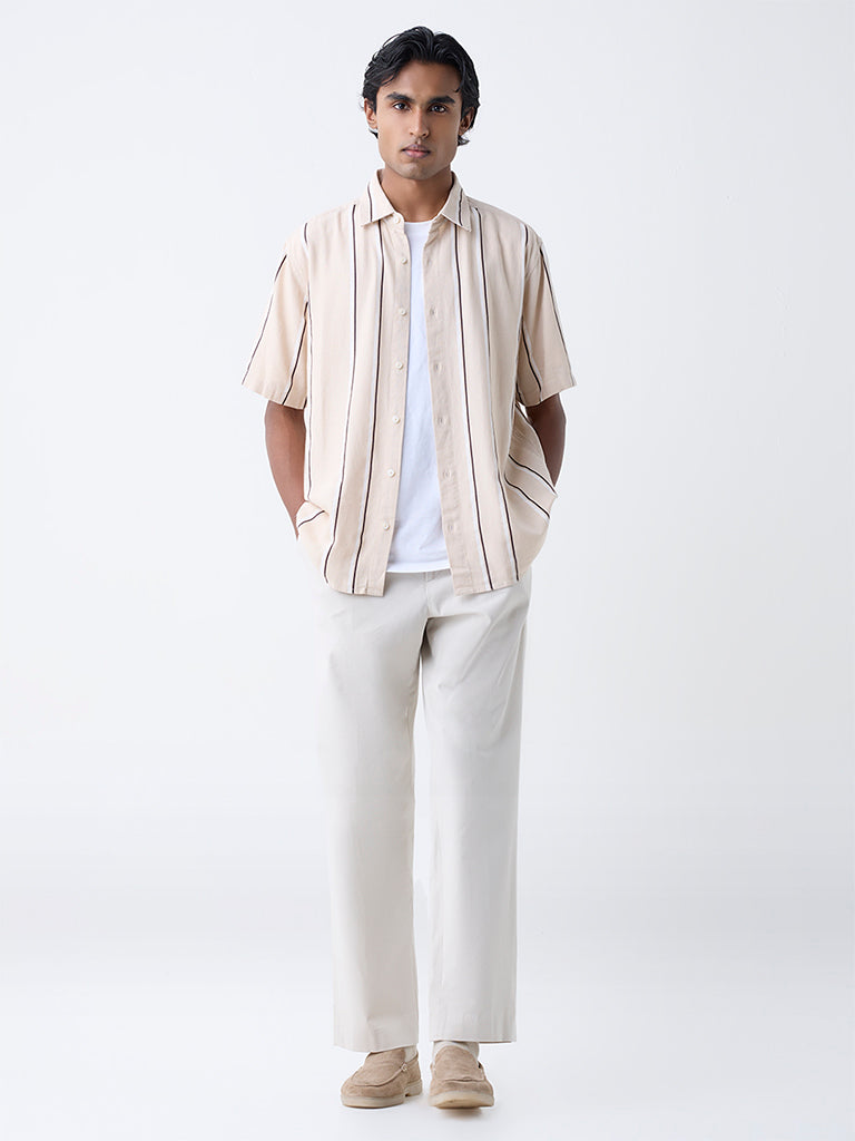 Be the first to review “Ascot Beige Striped Relaxed-Fit Shirt”