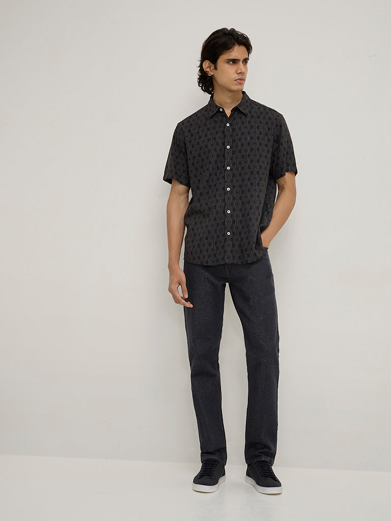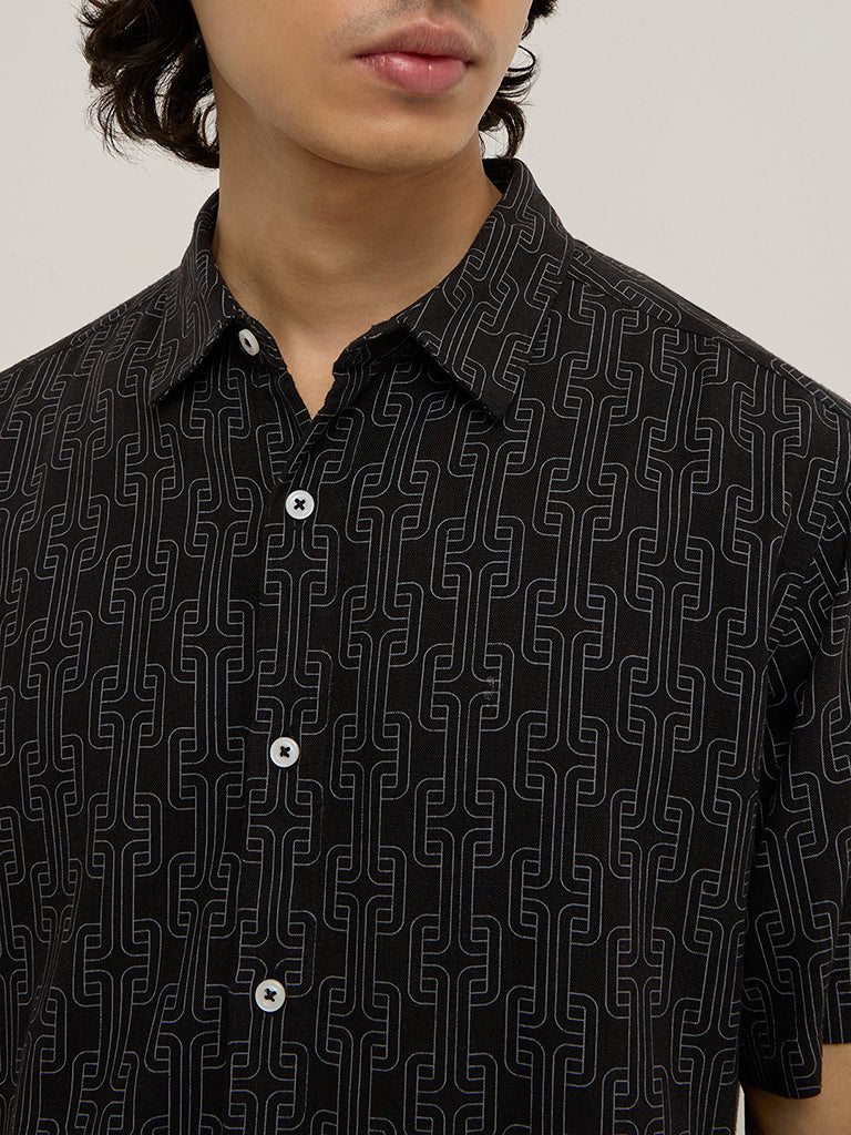 Ascot Black Abstract Design Relaxed-Fit Shirt