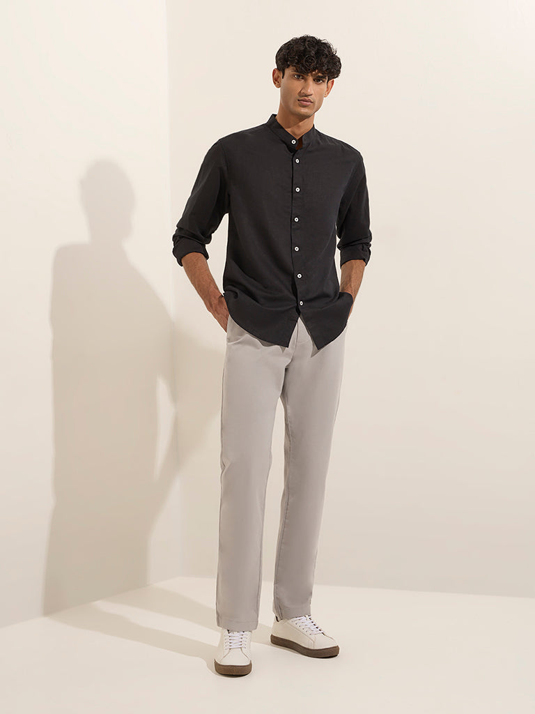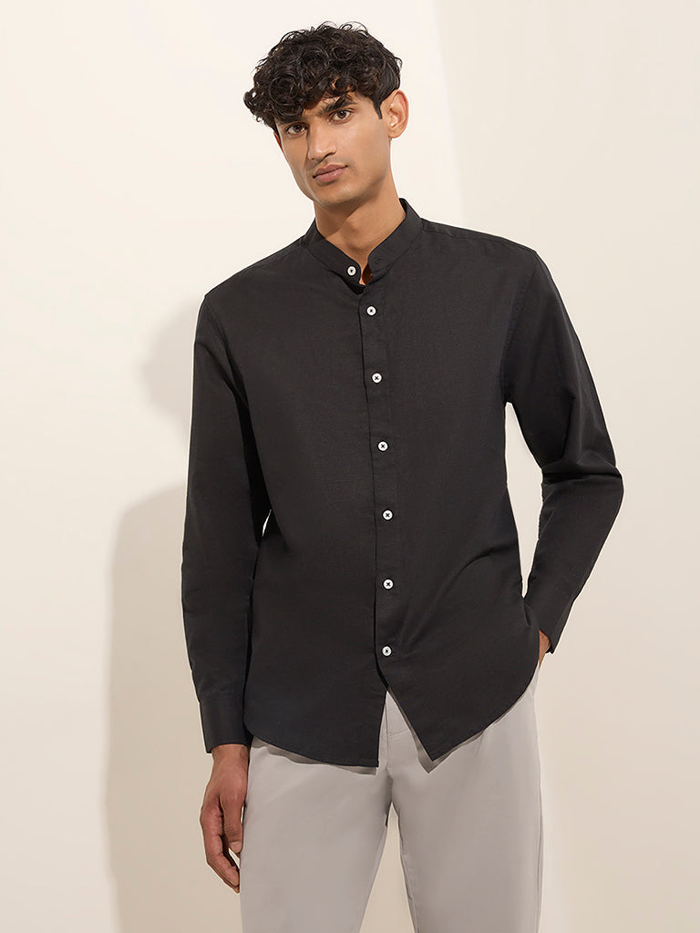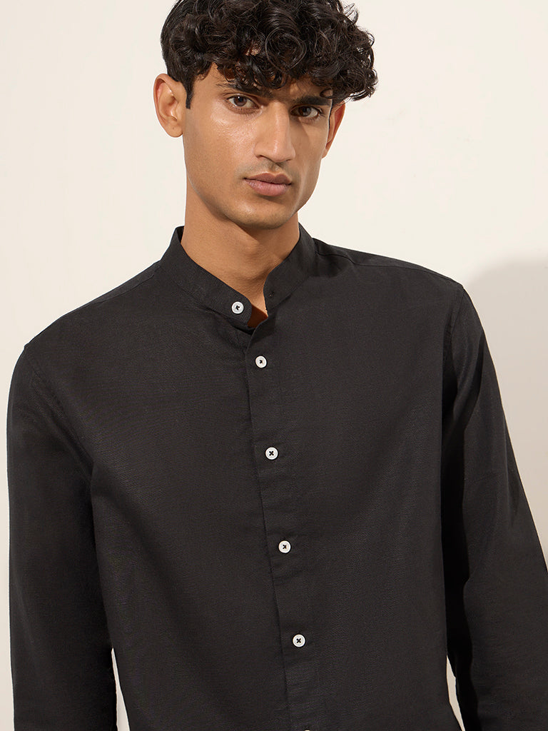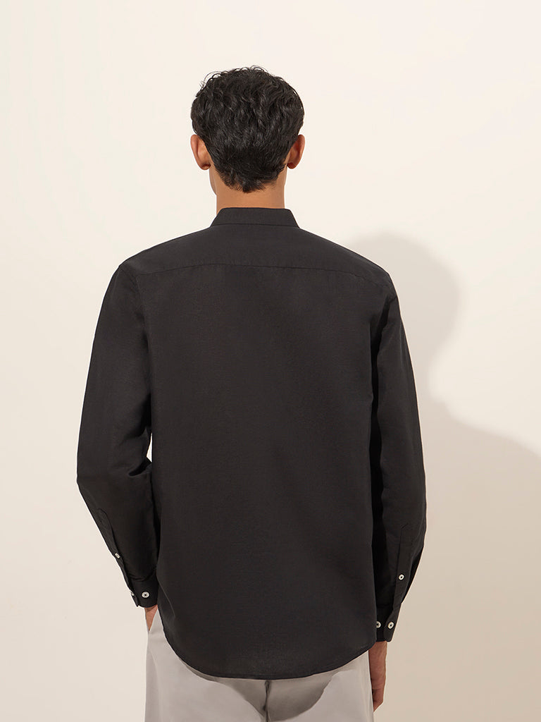 Ascot Black Solid Relaxed-Fit Linen-Blend Shirt