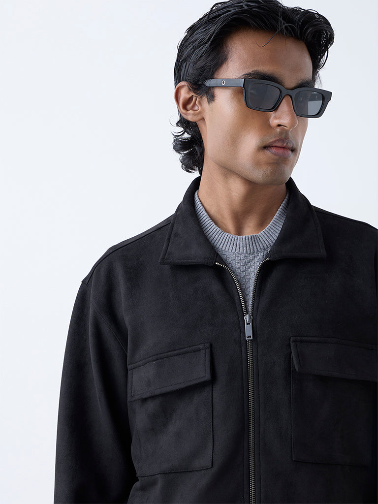 Ascot Black Solid Relaxed-Fit Suede Jacket