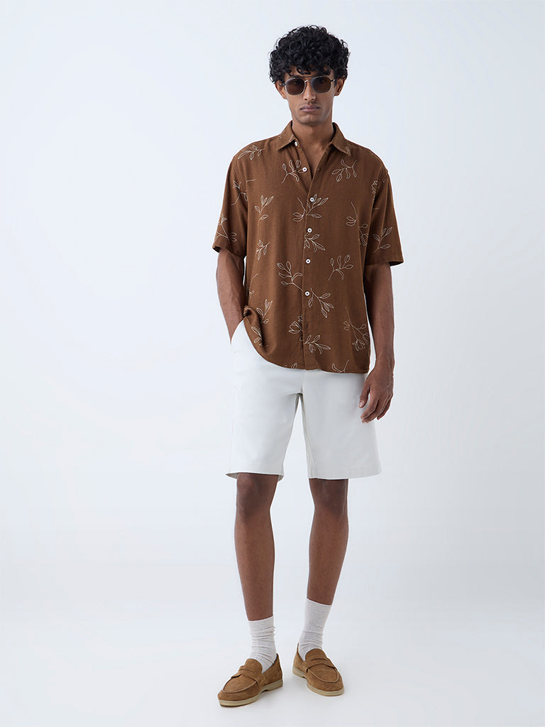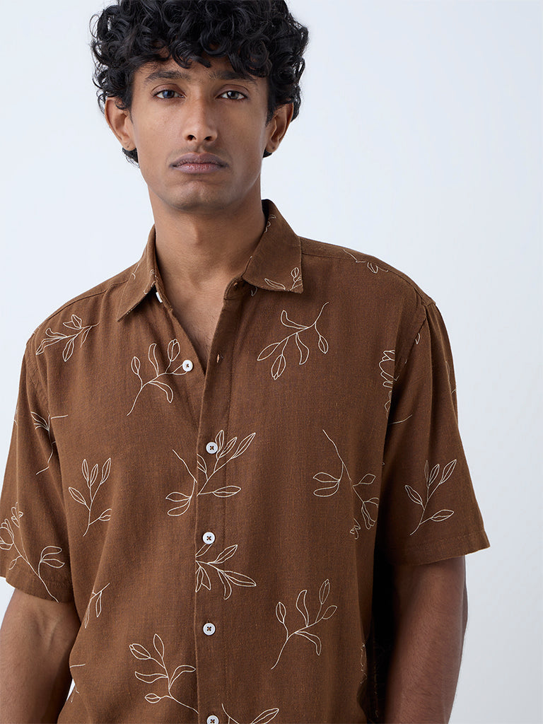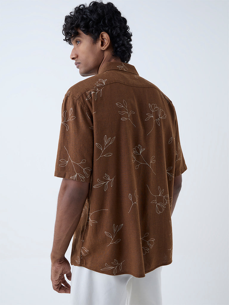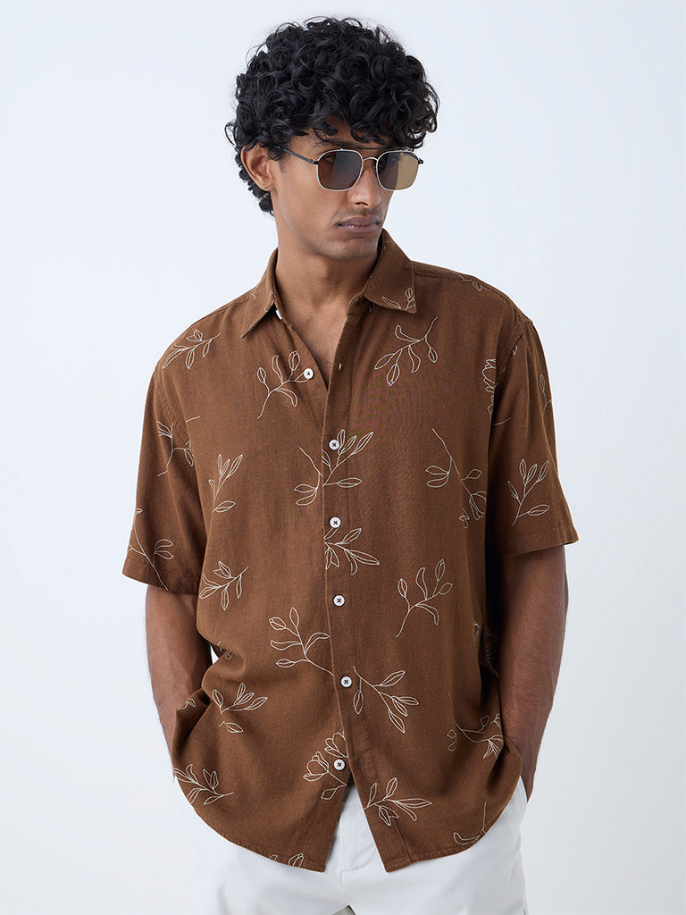 Ascot Brown Floral Design Relaxed-Fit Shirt
