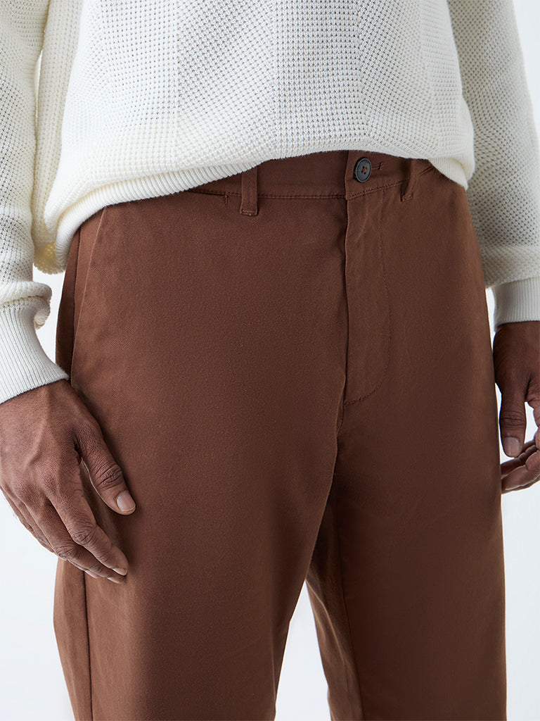 Ascot Brown Relaxed-Fit Mid-Rise Cotton-Blend Trousers
