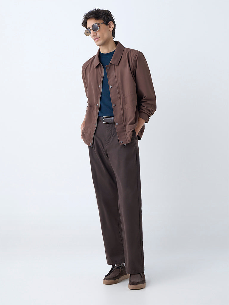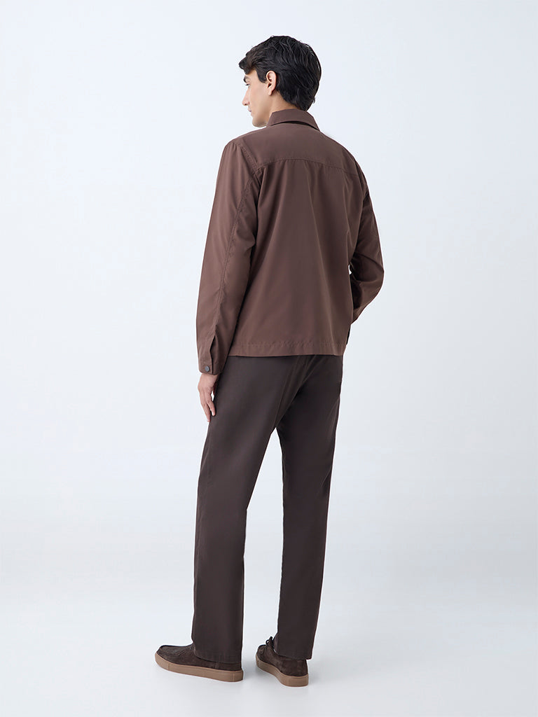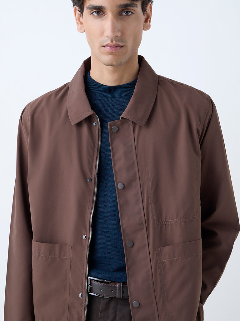 Infused with quiet luxury. this brown jacket from Ascot offers a considered take on elevated essentials. Crafted from premium fabric in a relaxed silhouette. it features a structured collar. full-length sleeves. and dual welt pockets. A concealed zip front sits beneath a classic button placket for a streamlined finish.