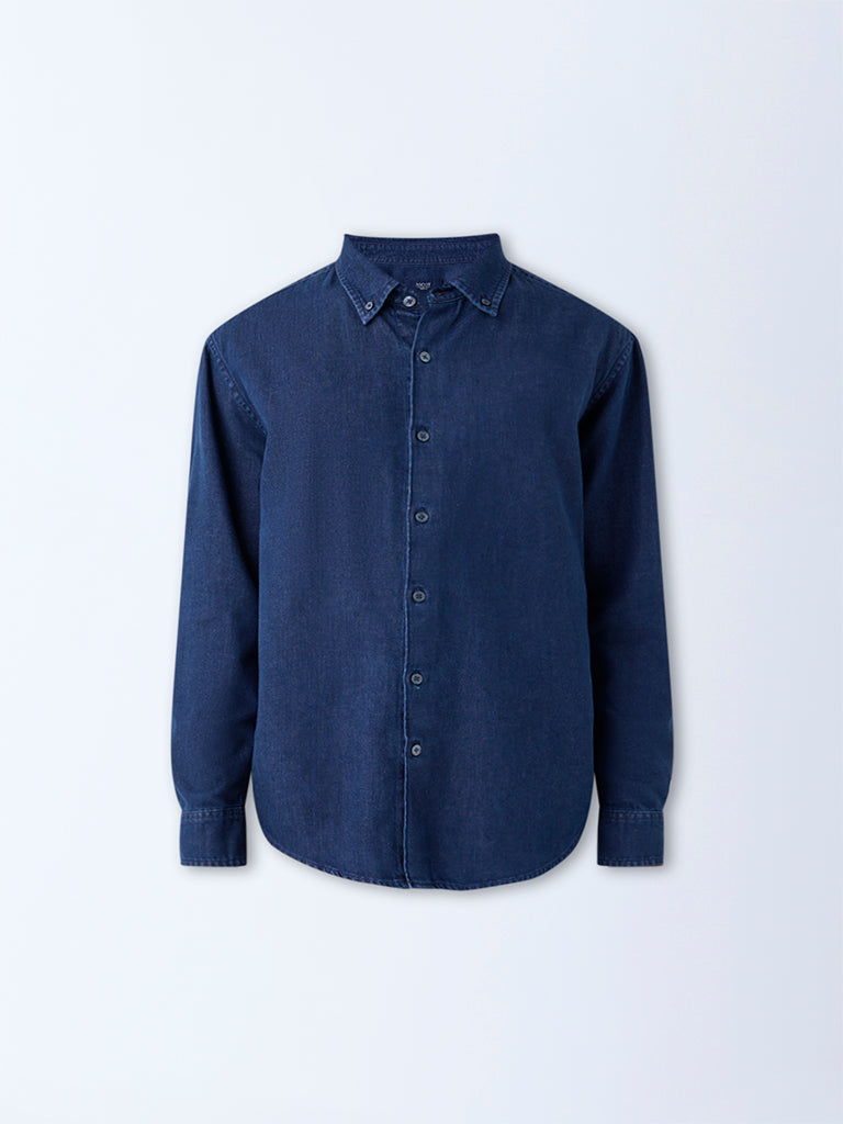 A smart take on casual staples. this dark blue denim shirt from Ascot blends classic styling with everyday ease. The button-down collar and full sleeves offer a nod to tailored classics. while the breathable fabric and relaxed silhouette ensure modern comfort.