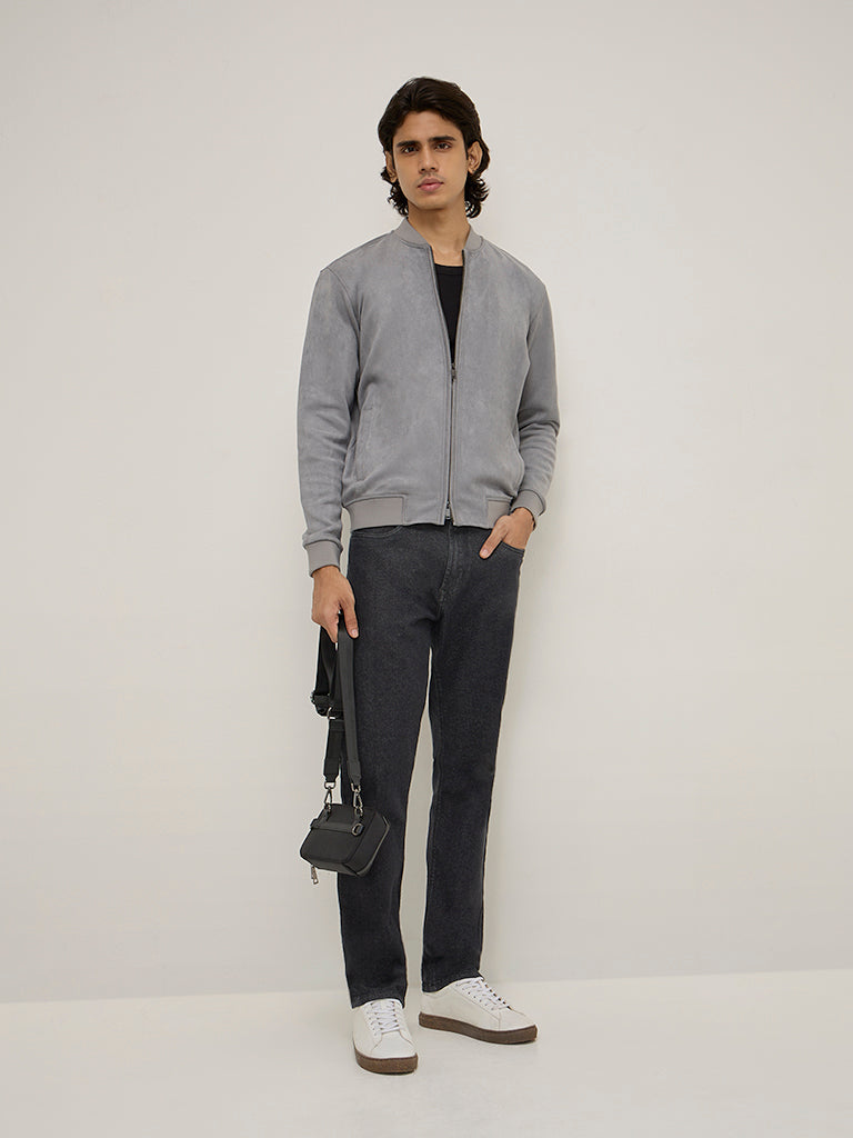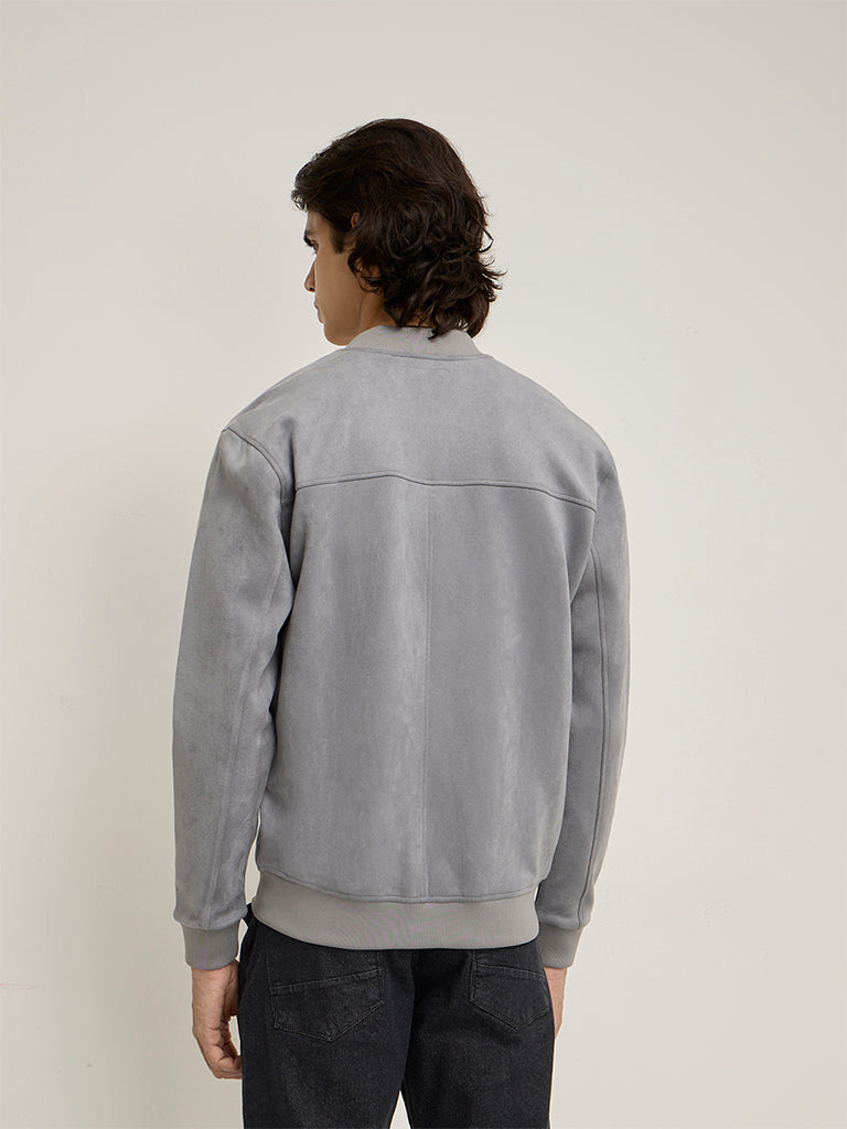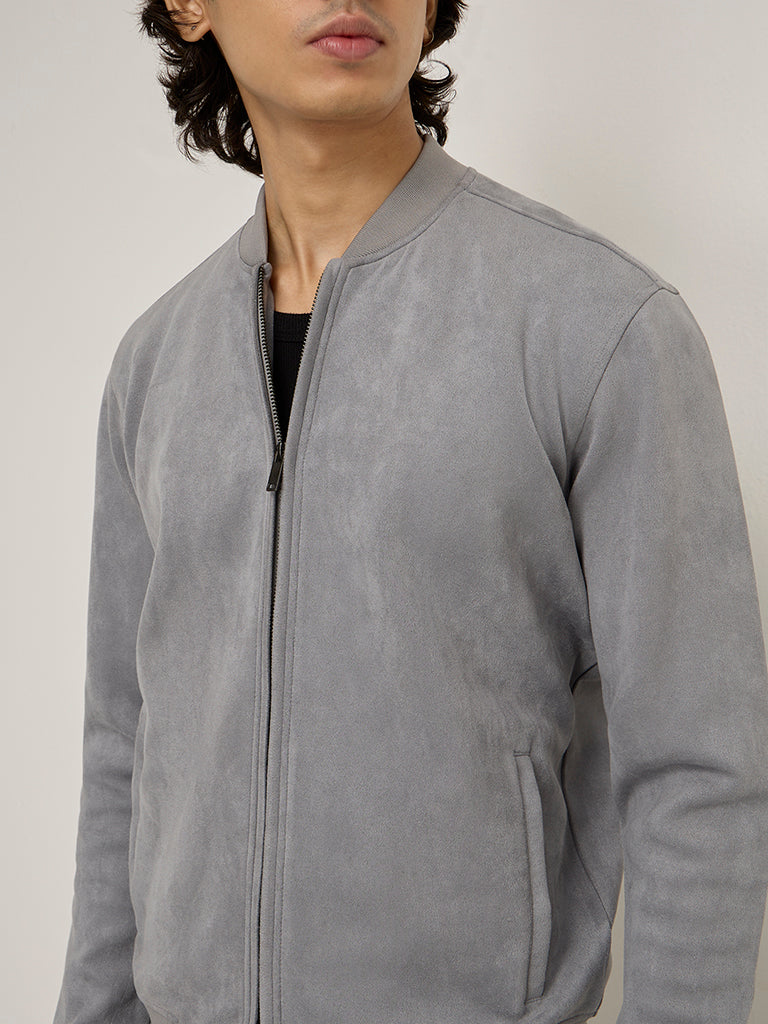Ascot Grey Faux-Suede Relaxed-Fit Jacket