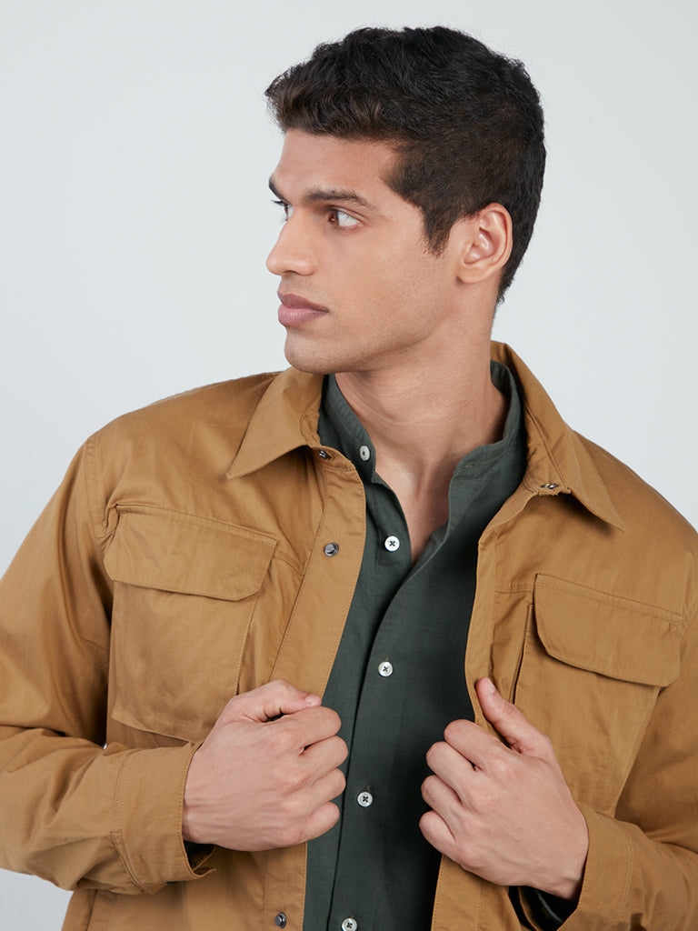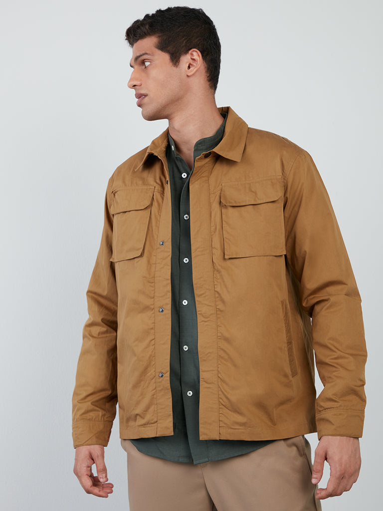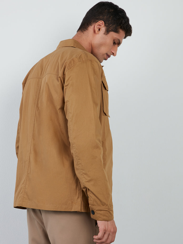 Amp up your trans-seasonal wardrobe by choosing this khaki jacket from Ascot. Crafted from a cotton-rich material to give you a comfortable fit. this layering separate features a button-down front with slit pockets as well as chest pockets for functionality.