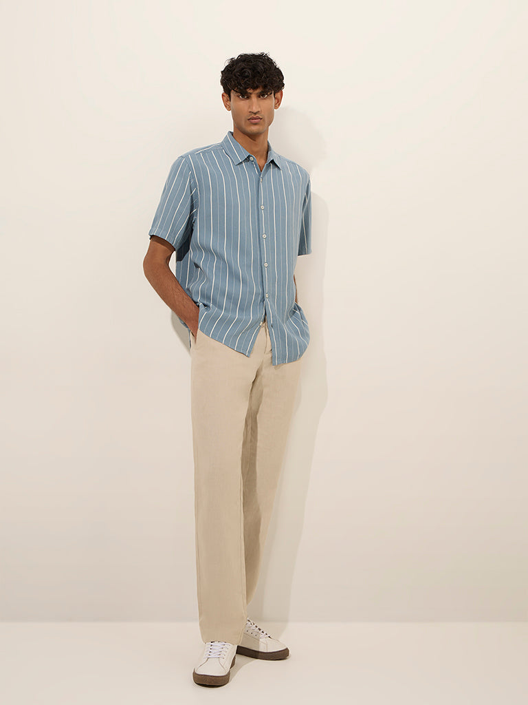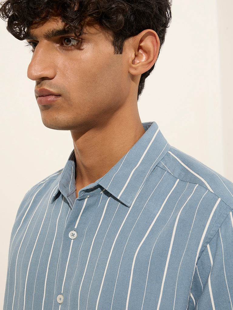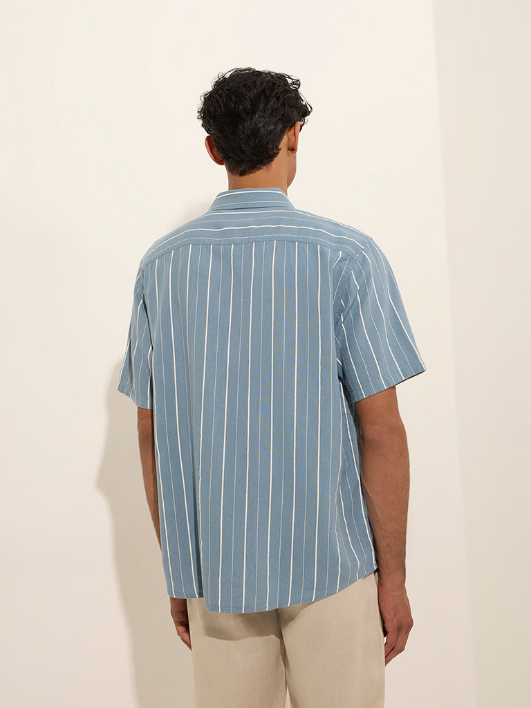 Ascot Light Blue Striped Relaxed-Fit Shirt