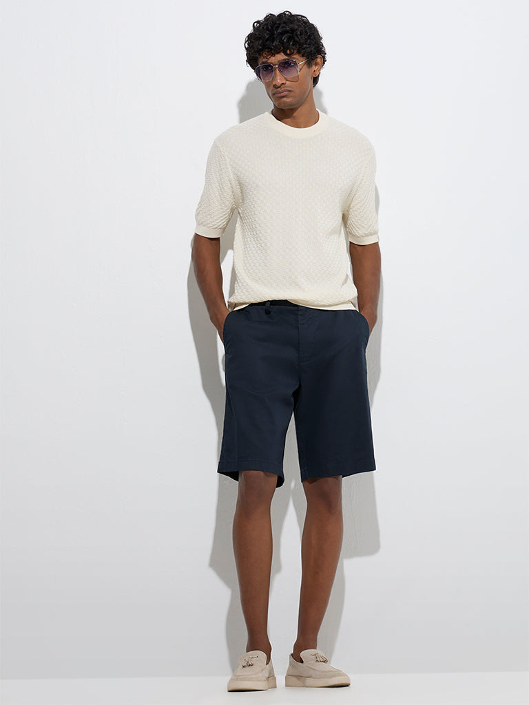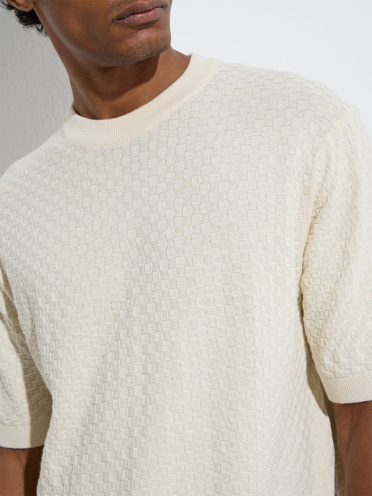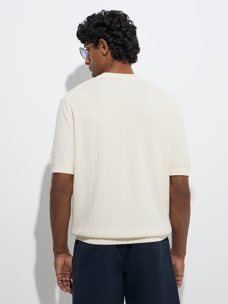 Simple yet elevated. this light yellow t-shirt from Ascot is woven from a knit-textured fabric that lends quiet sophistication. Cut in a relaxed fit from a soft cotton blend material. it features a classic crew neck and half sleeves.
