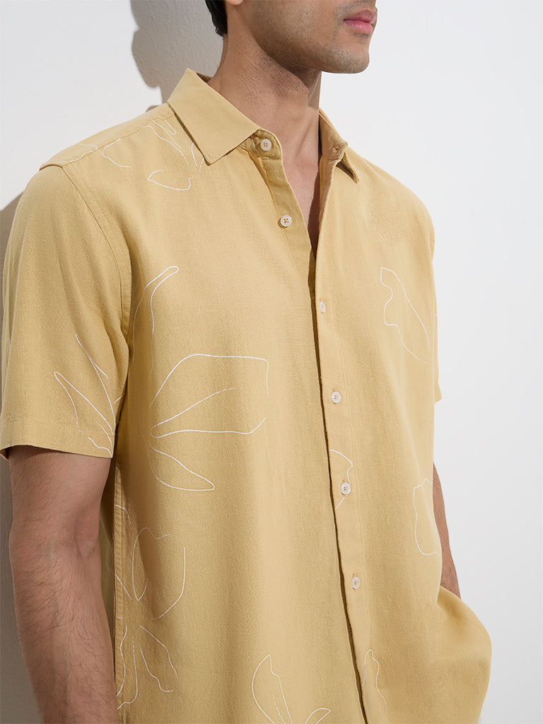 Ascot Mustard Abstract Design Relaxed-Fit Shirt