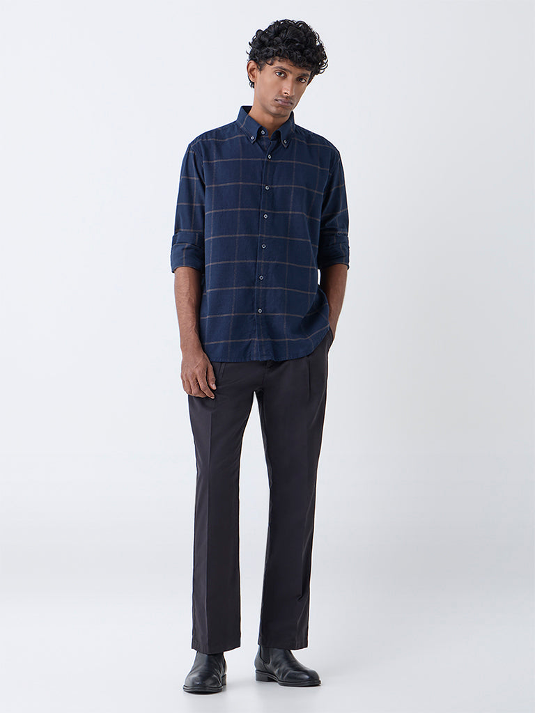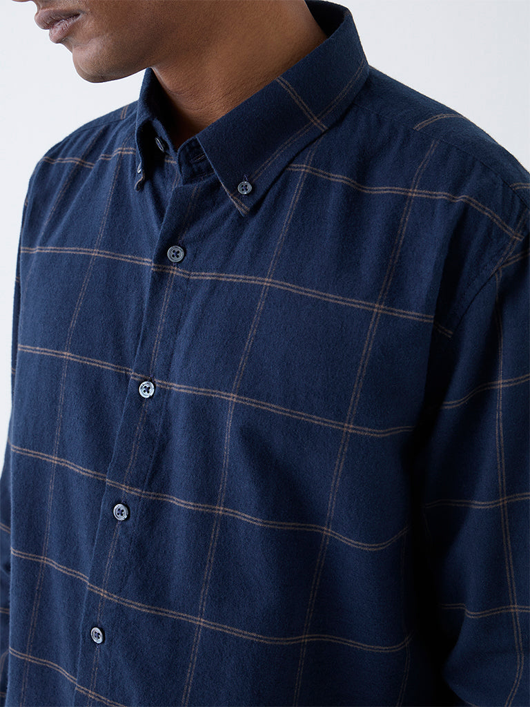 Ascot Navy Check Relaxed-Fit Cotton Shirt