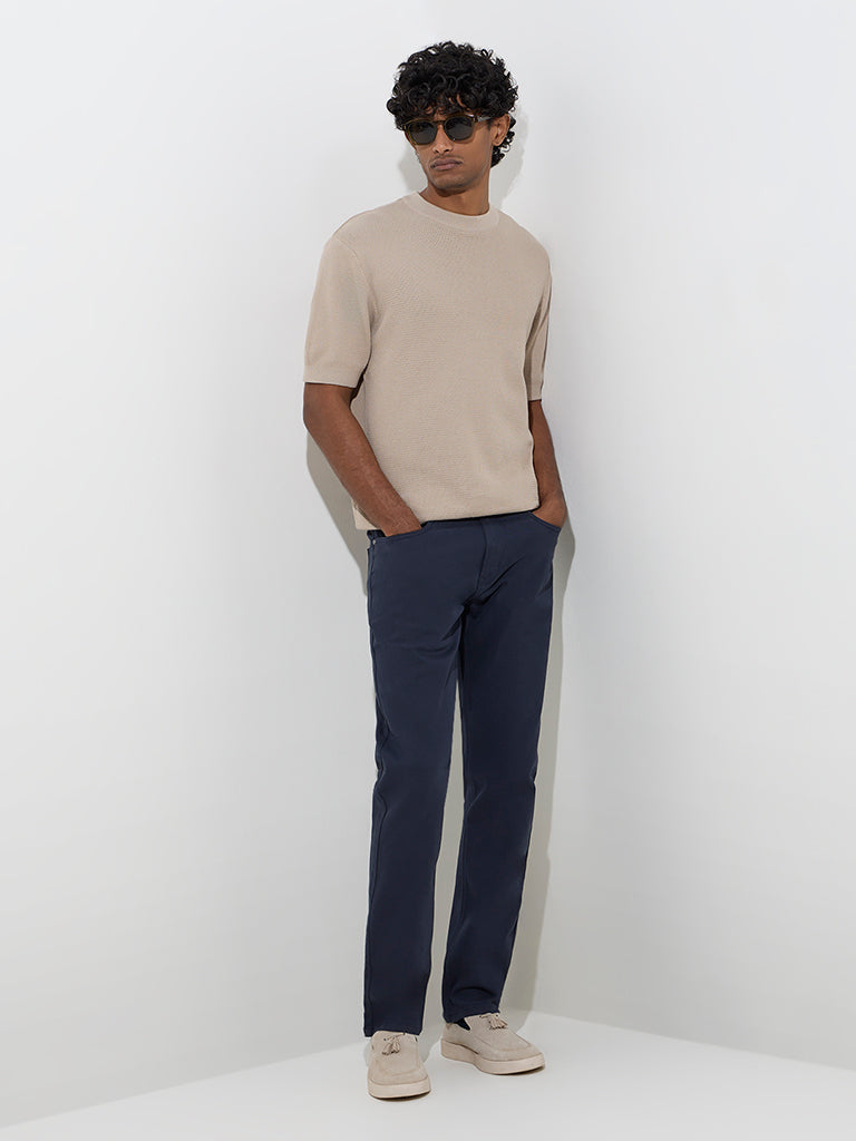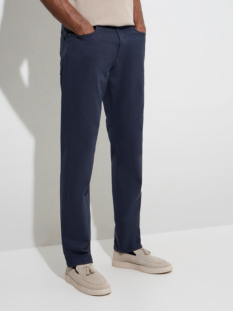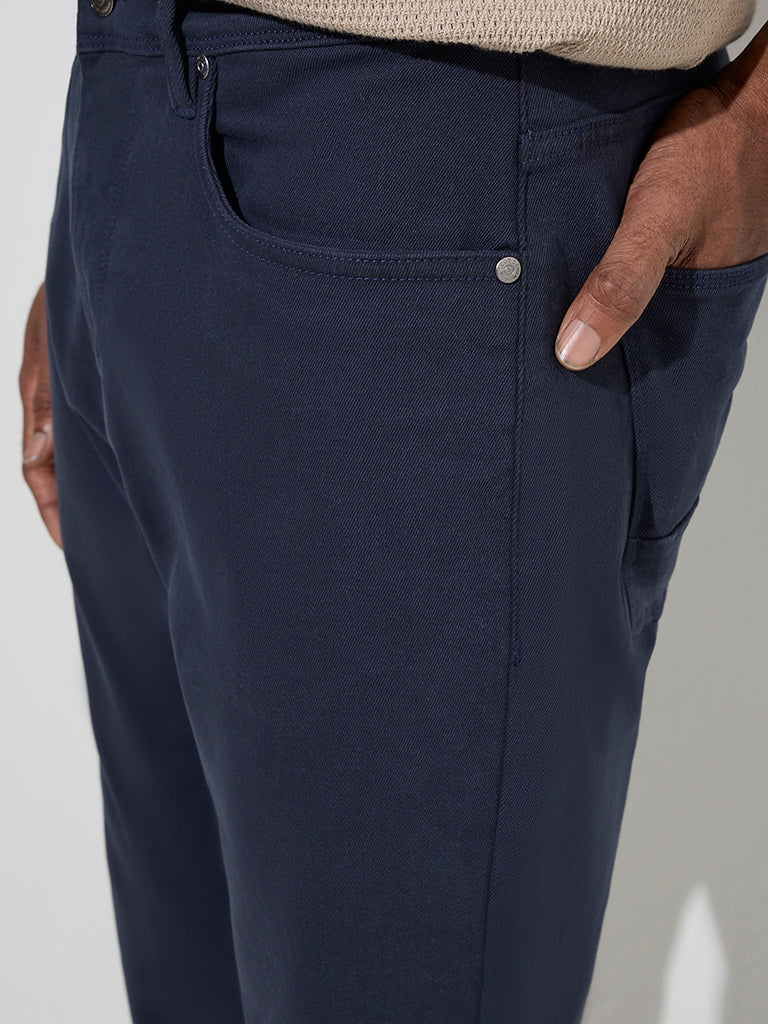 Ascot Navy Relaxed-Fit Mid-Rise Cotton-Blend Trousers