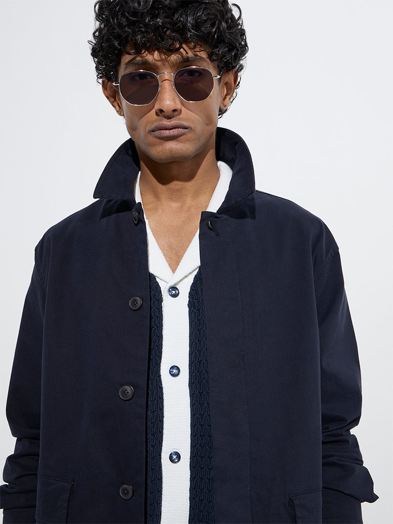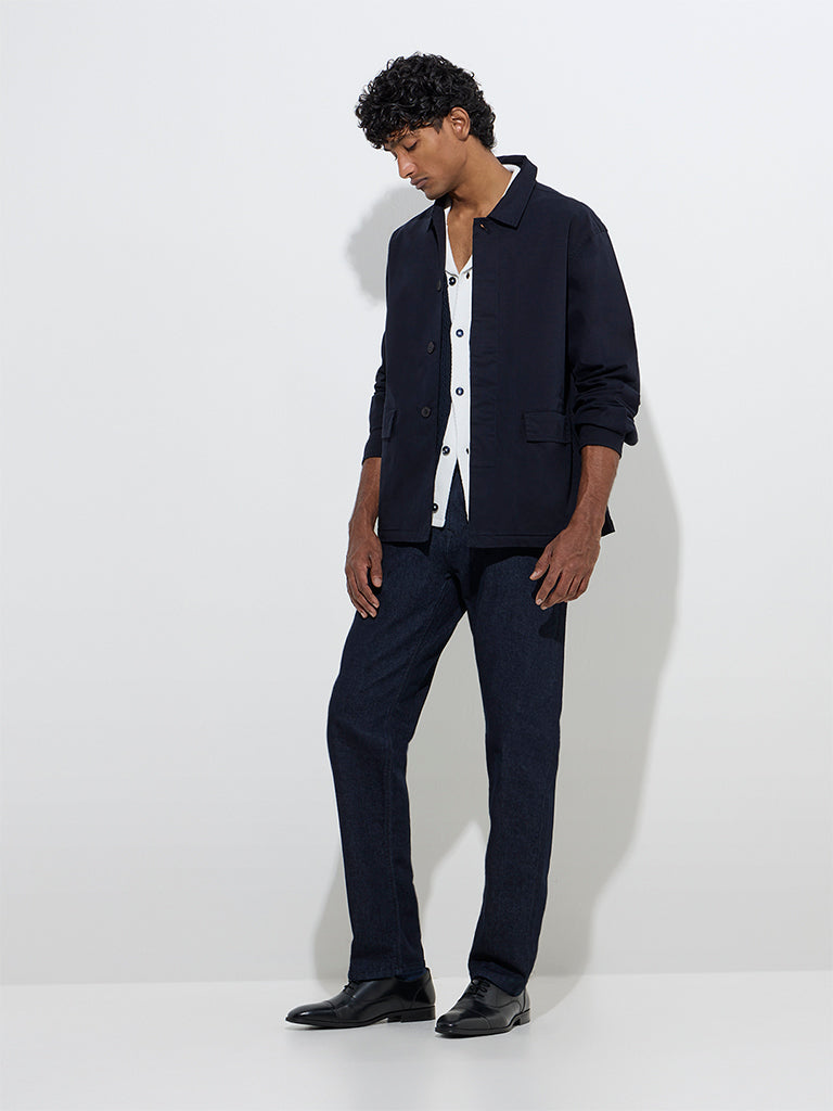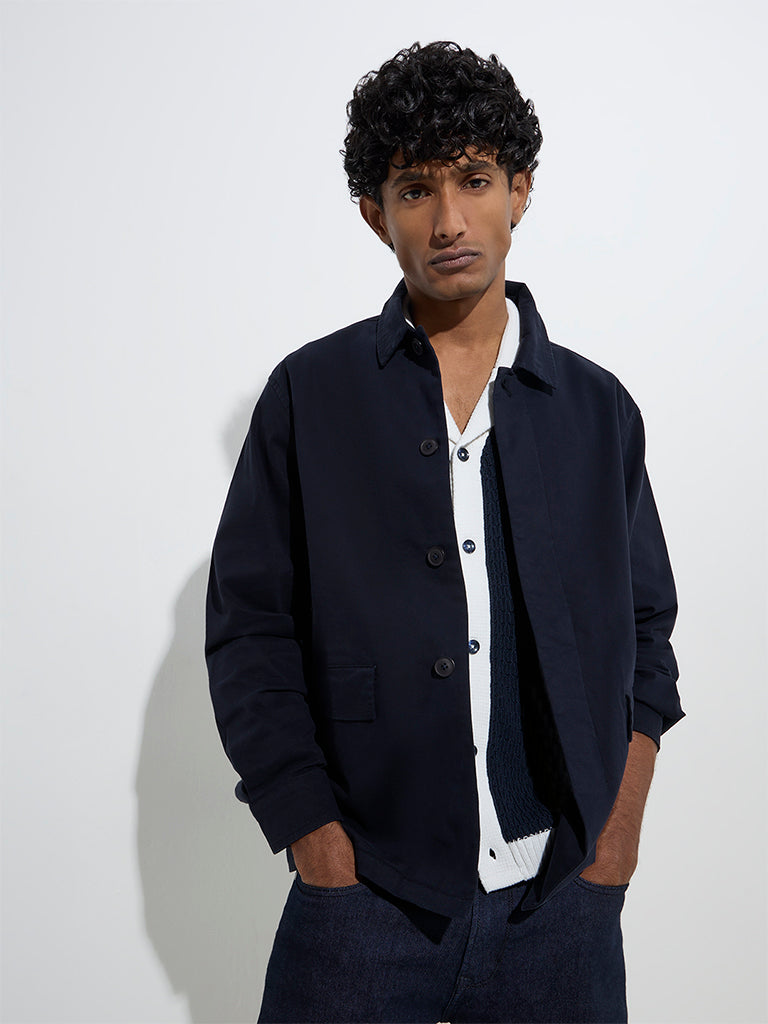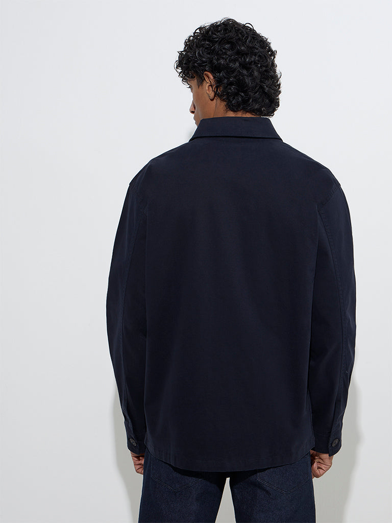 Ascot Navy Solid Relaxed-Fit Cotton Jacket