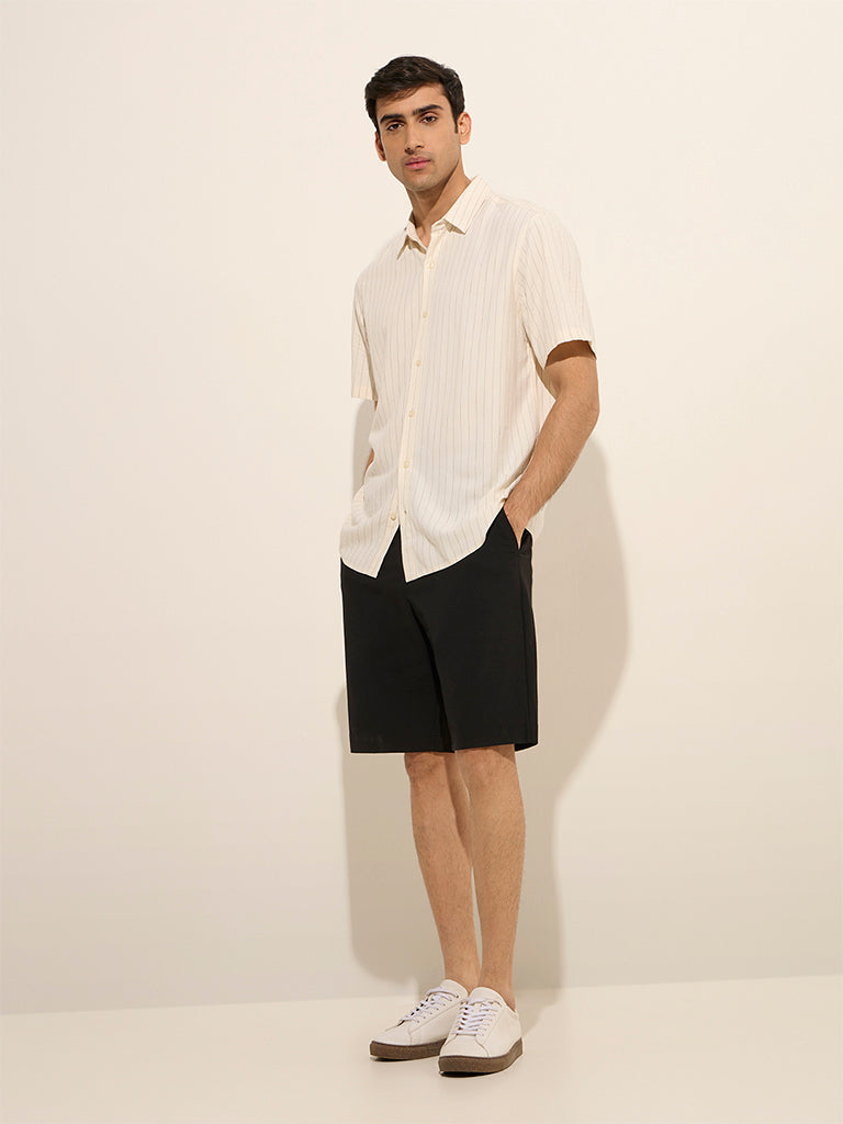 Ascot Off-White Pinstriped Relaxed-Fit Shirt