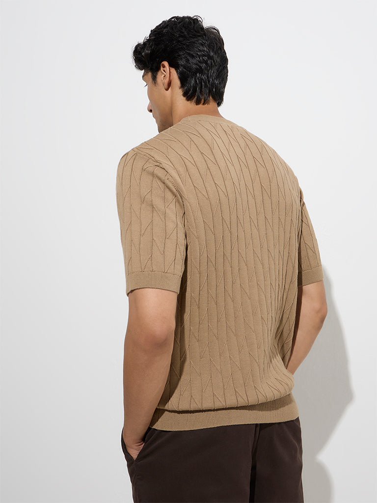 Ascot Taupe Knit-Textured Relaxed-Fit Cotton T-Shirt