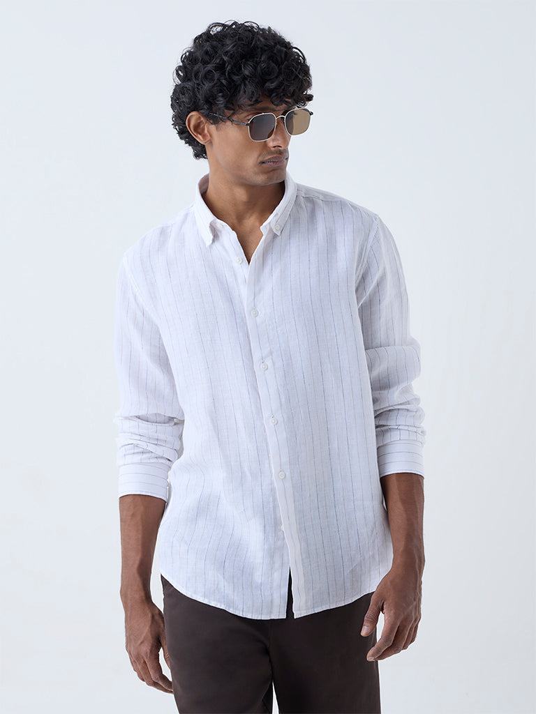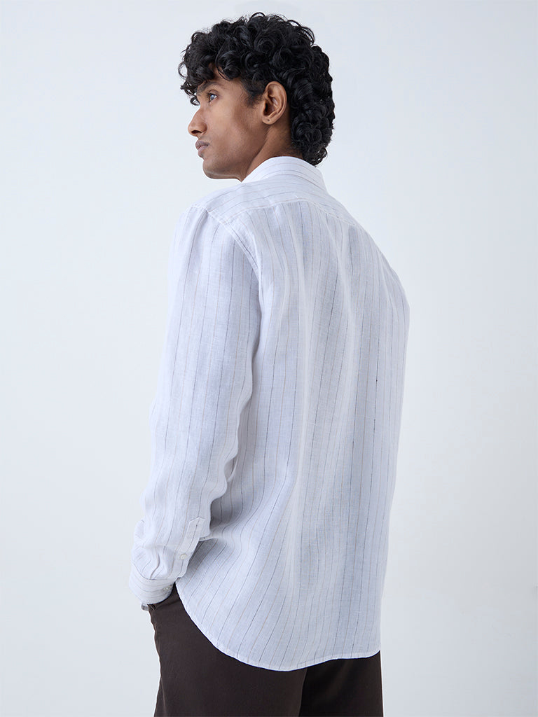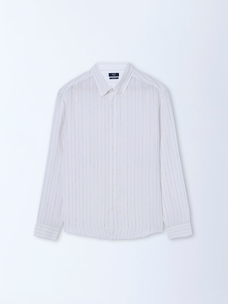 Ascot White Striped Relaxed-Fit Cotton Shirt