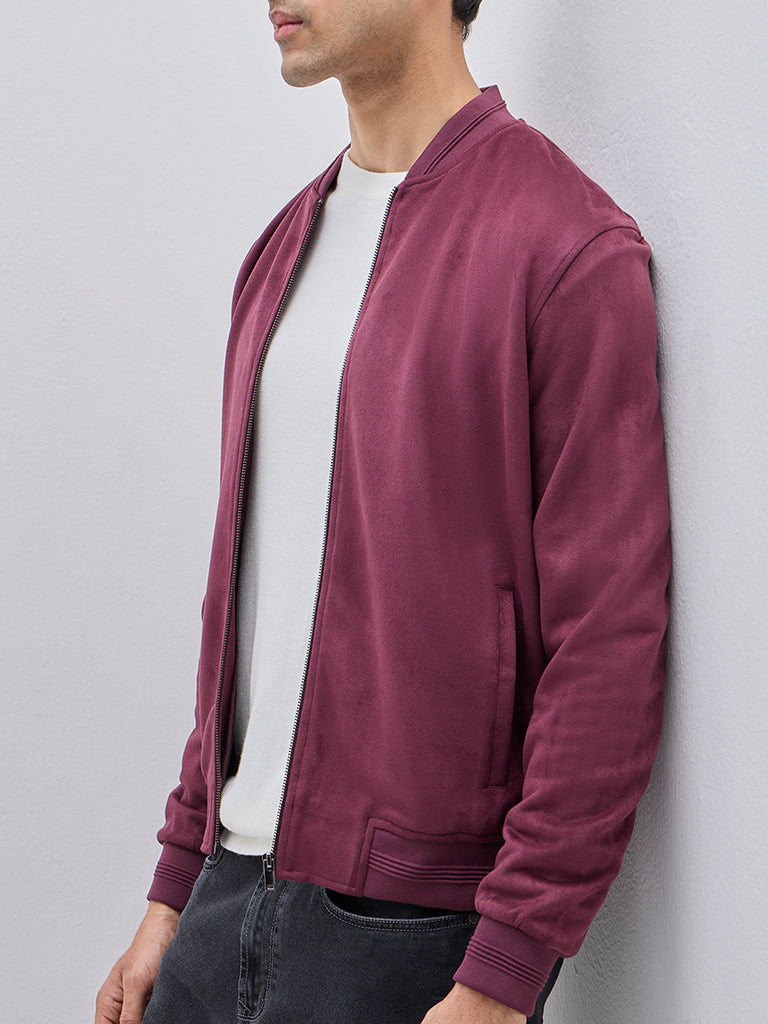 Ascot Wine Faux-Suede Relaxed-Fit Jacket