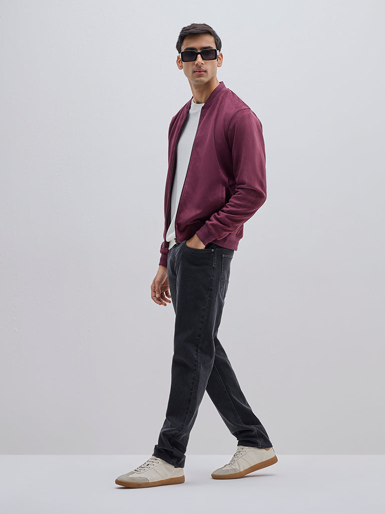 This wine jacket from Ascot is fashioned with a faux-suede finish. Built from a plush fabric. the relaxed-fit garment is complete with a ribbed high-neck collar that extends to a zipper placket and full sleeves.