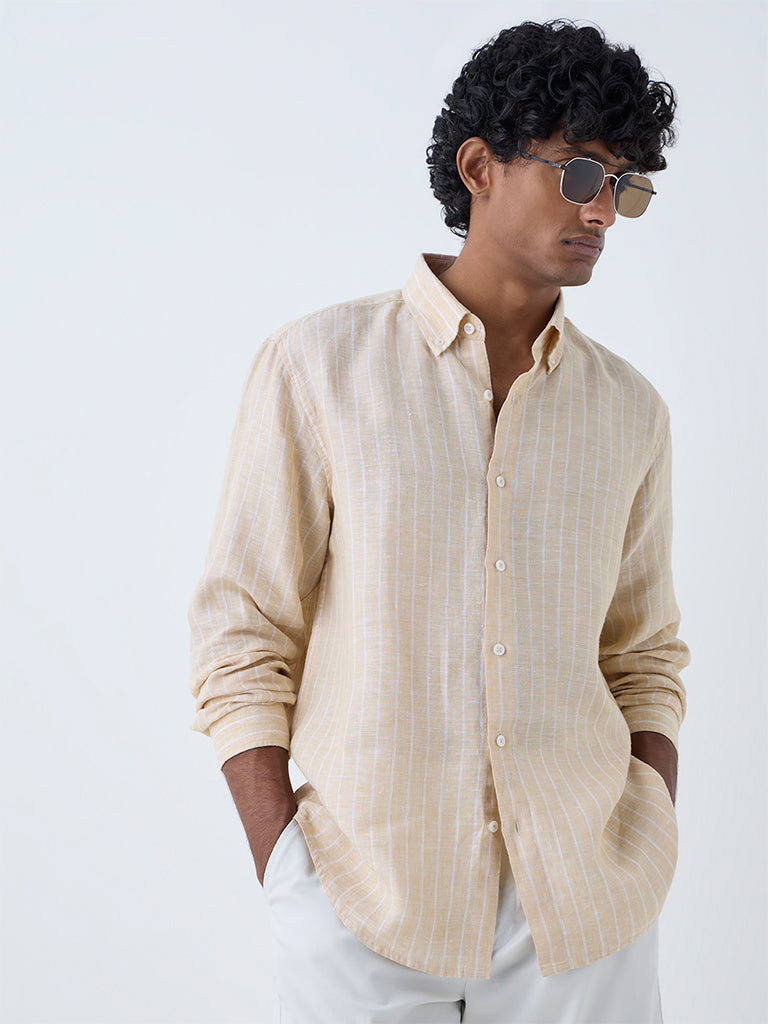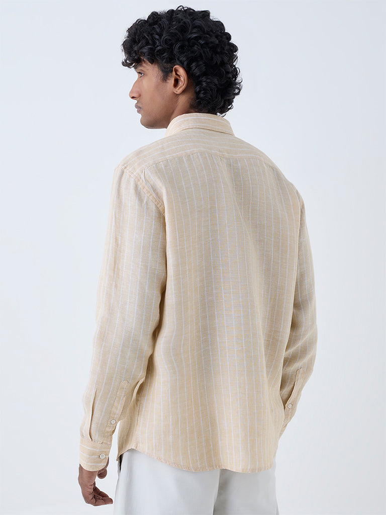 Ascot Yellow Striped Relaxed-Fit Linen Shirt