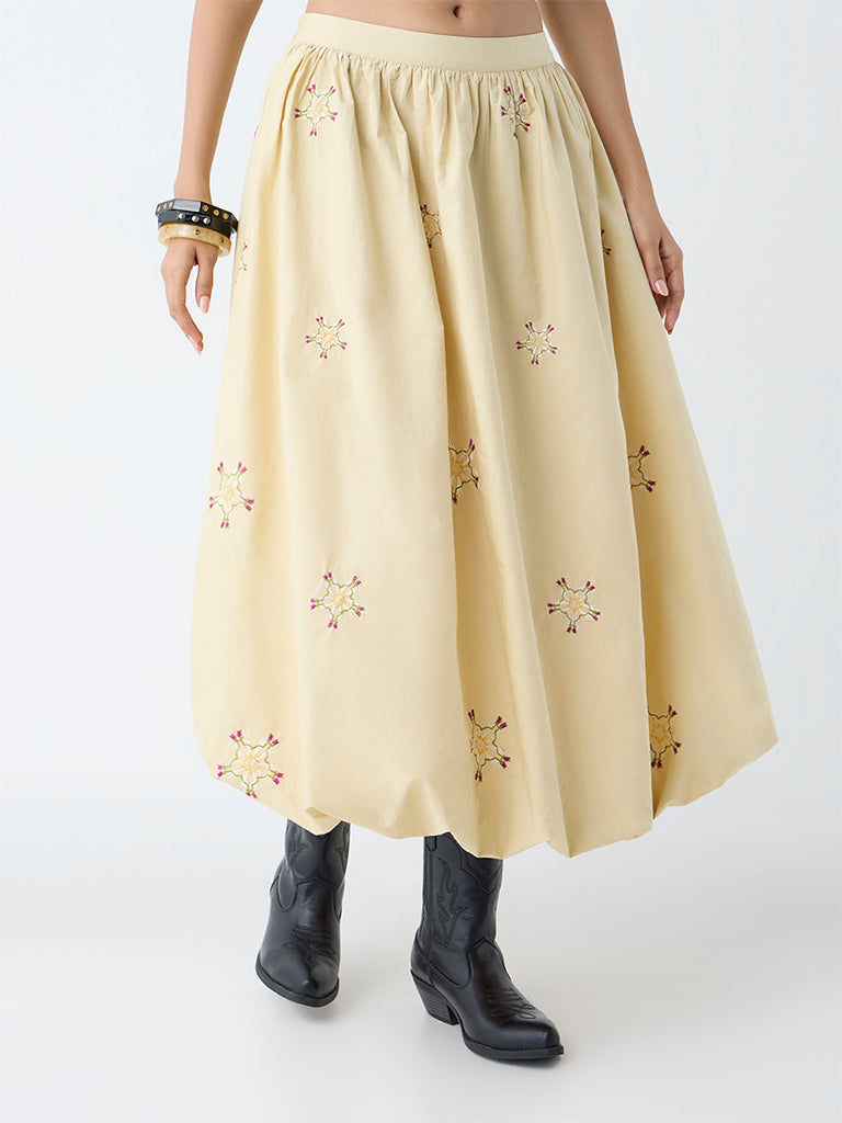 Bombay Paisley Beige Embroidered Cotton Bubble Skirt