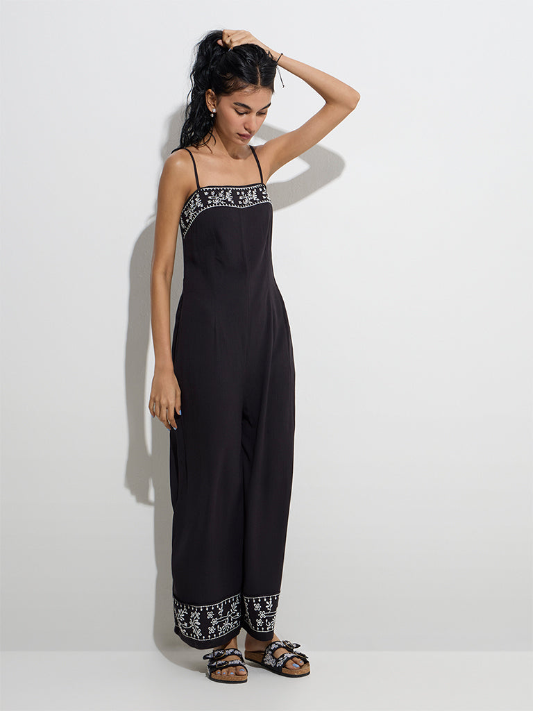 Bombay Paisley Black Floral Embroidered Jumpsuit