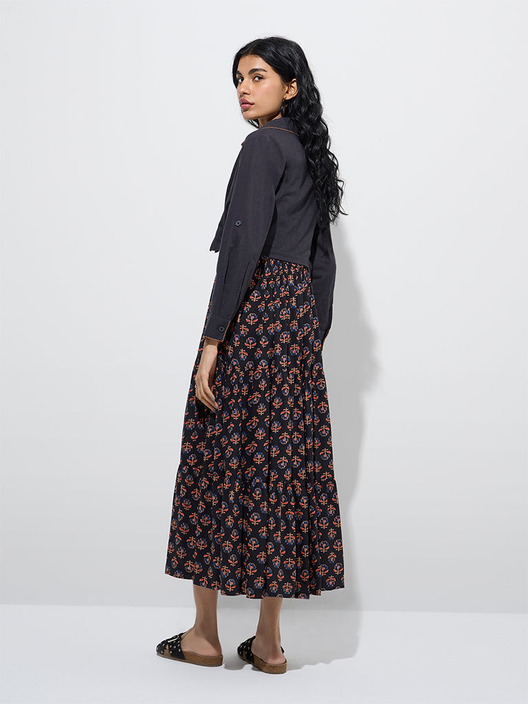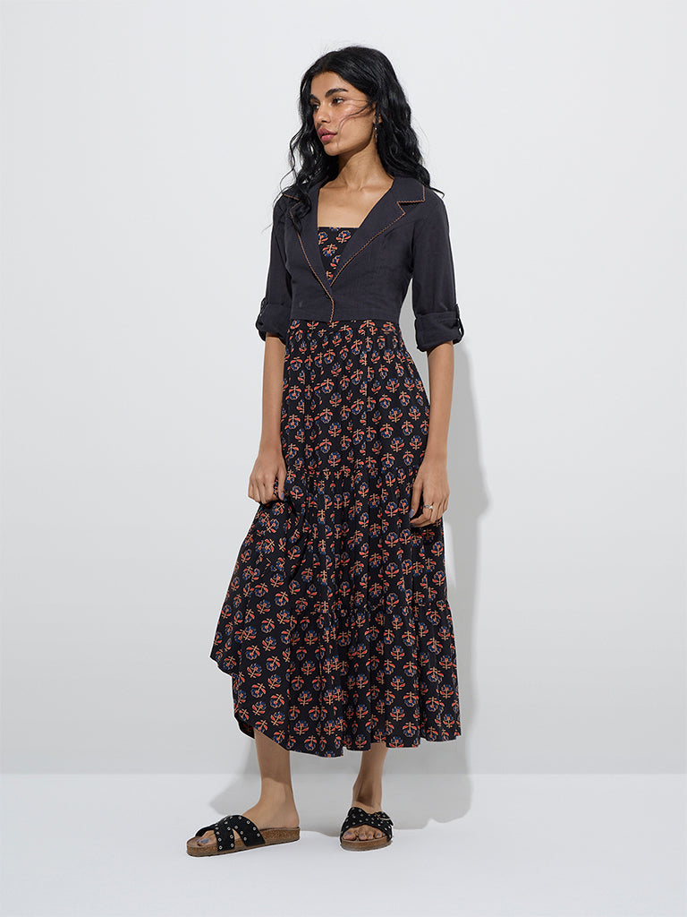 Bombay Paisley Black Floral Tiered Dress with Jacket