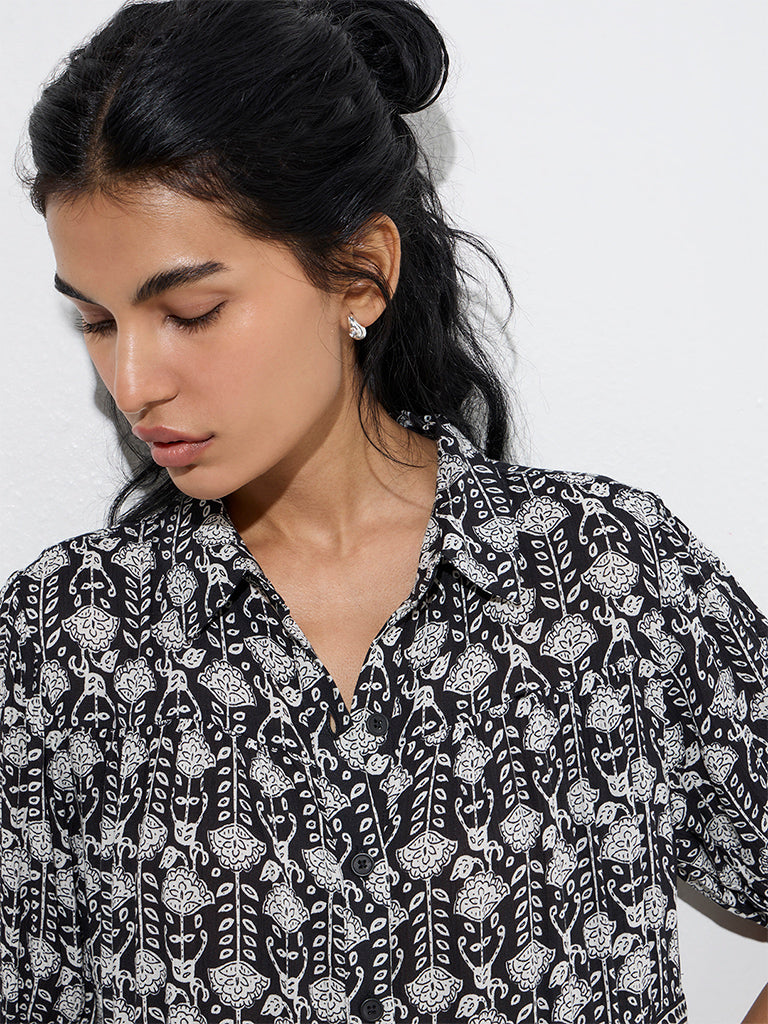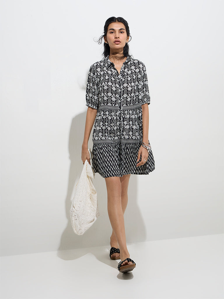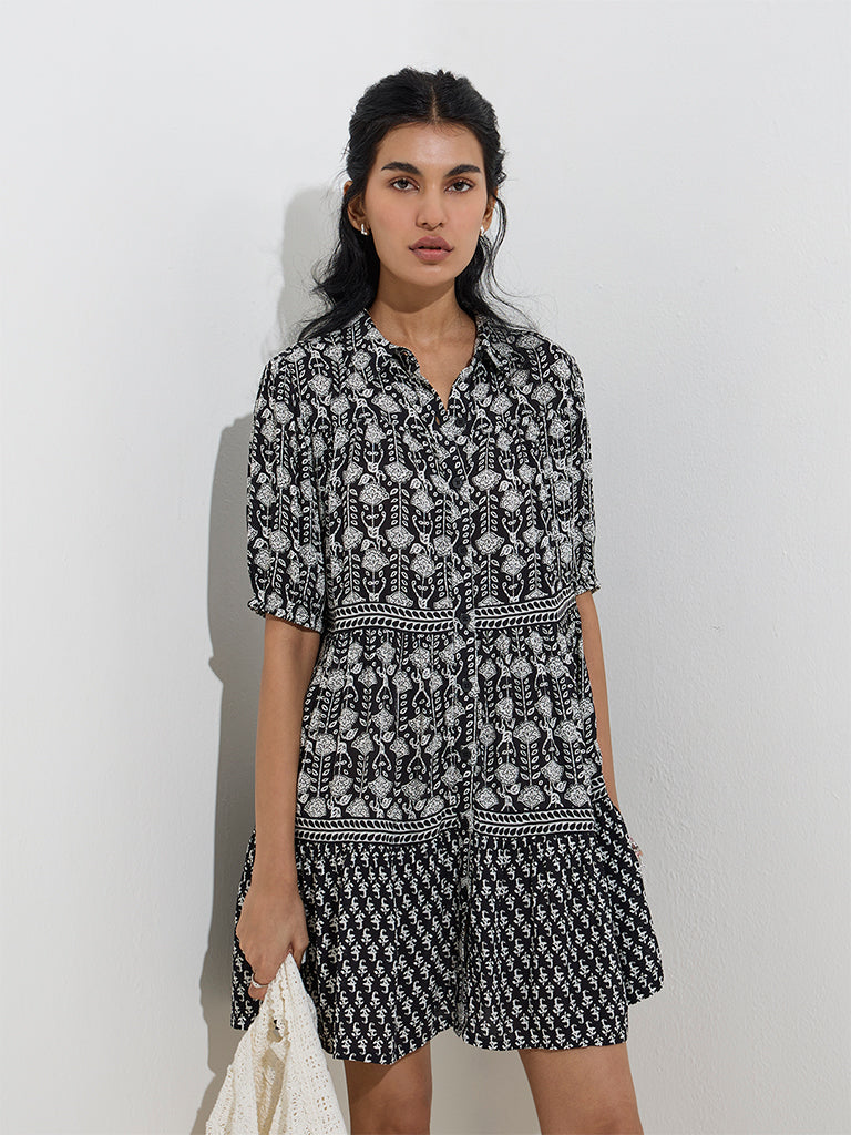 Bombay Paisley Black Paisley Printed Cotton Shirt Dress
