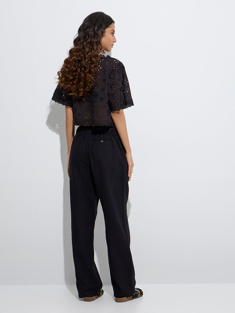 Bombay Paisley Black Solid Cotton-Blend Pants