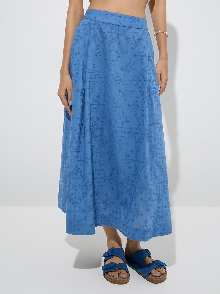 Bombay Paisley Blue Embroidered Cotton Skirt