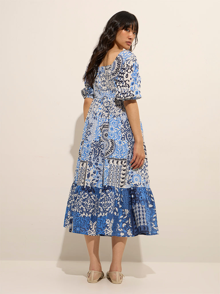Bombay Paisley Blue Ethnic Printed Fit-and-Flare Dress