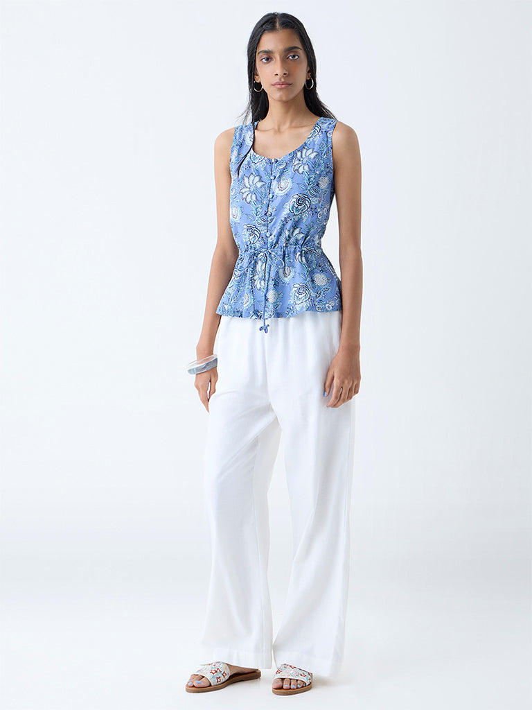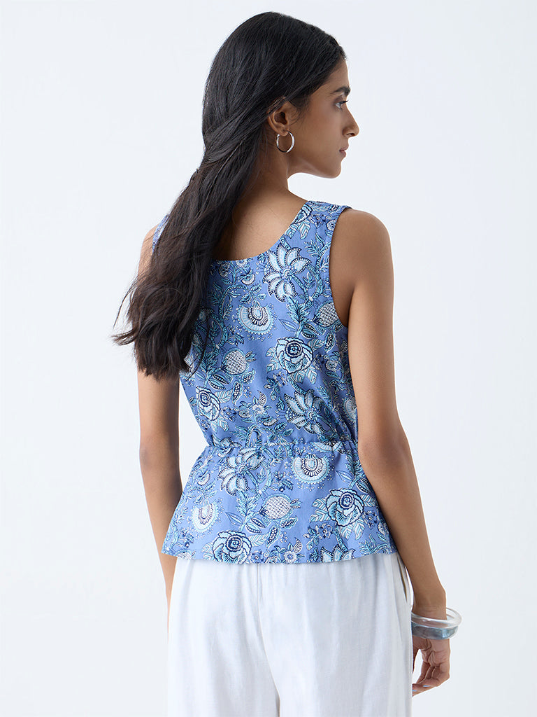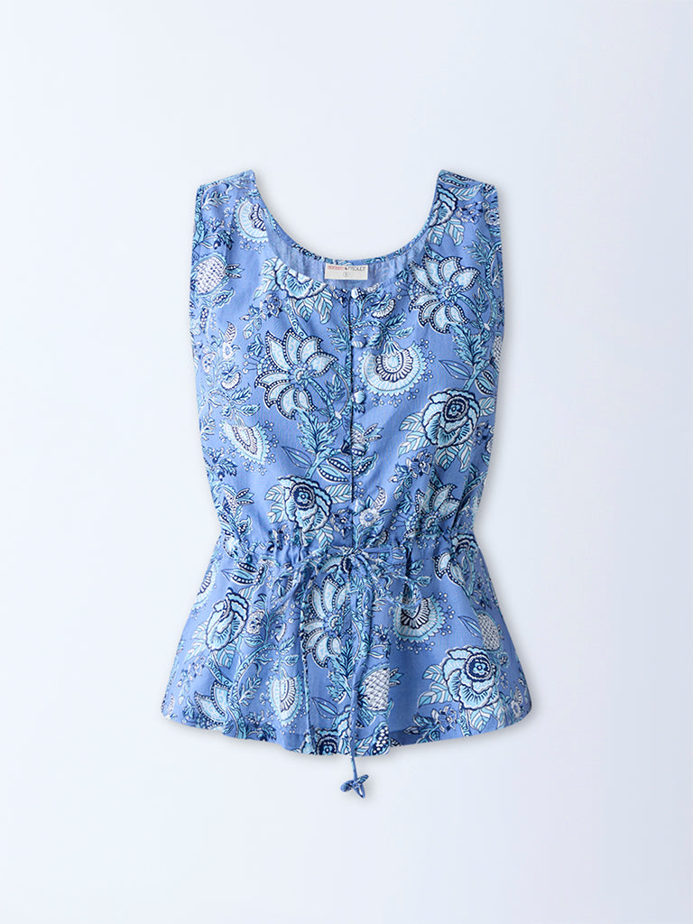 Bombay Paisley Blue Floral Pattern Cotton Peplum Top