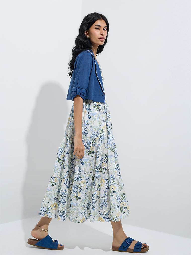 Bombay Paisley Blue Floral Tiered Cotton Dress with Jacket