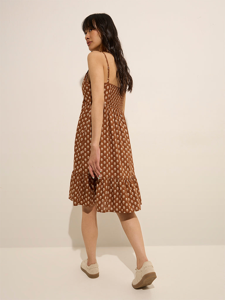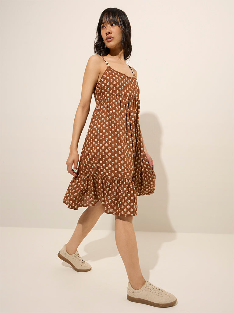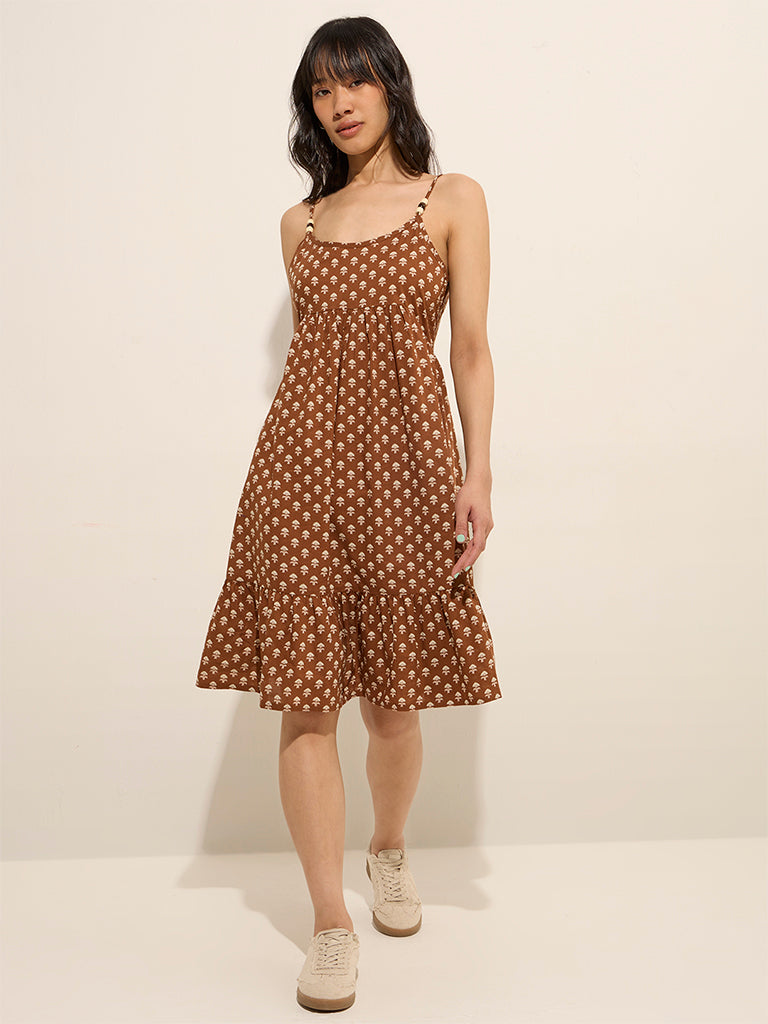 Bombay Paisley Brown Ethnic Printed A-Line Cotton Dress