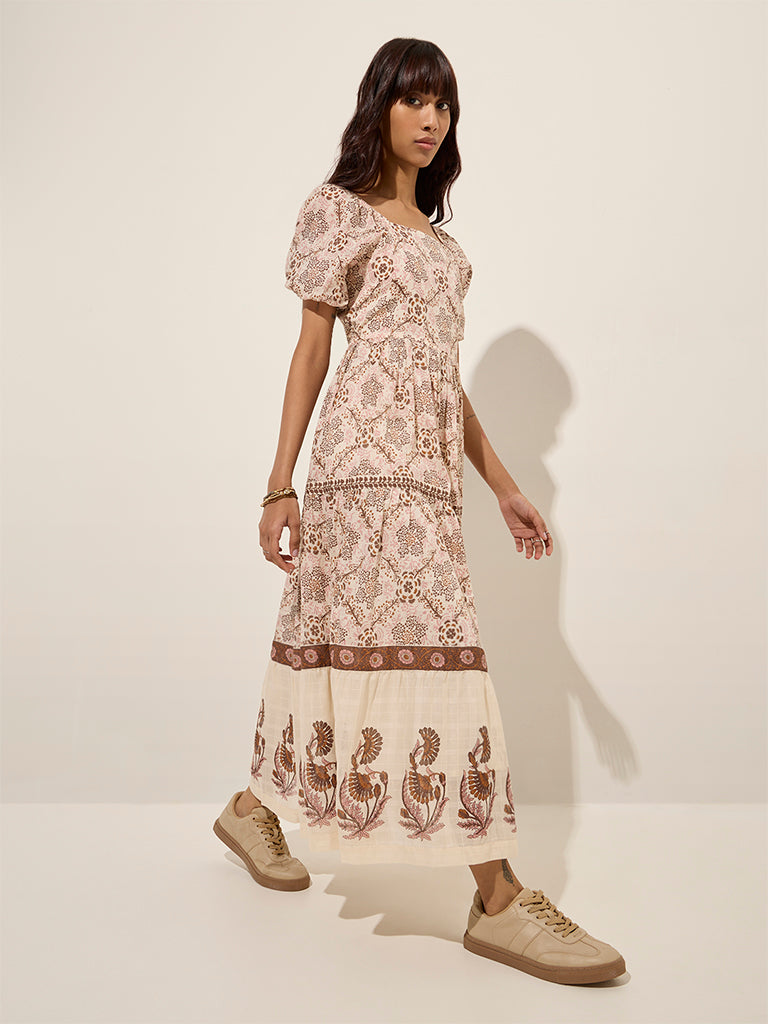 Bombay Paisley Brown Floral Cotton A-Line Dress