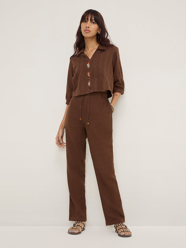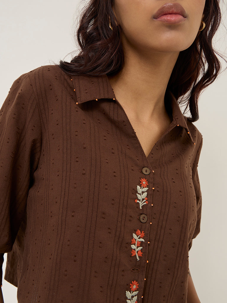 Bombay Paisley Brown Floral Embroidered Cotton Shirt