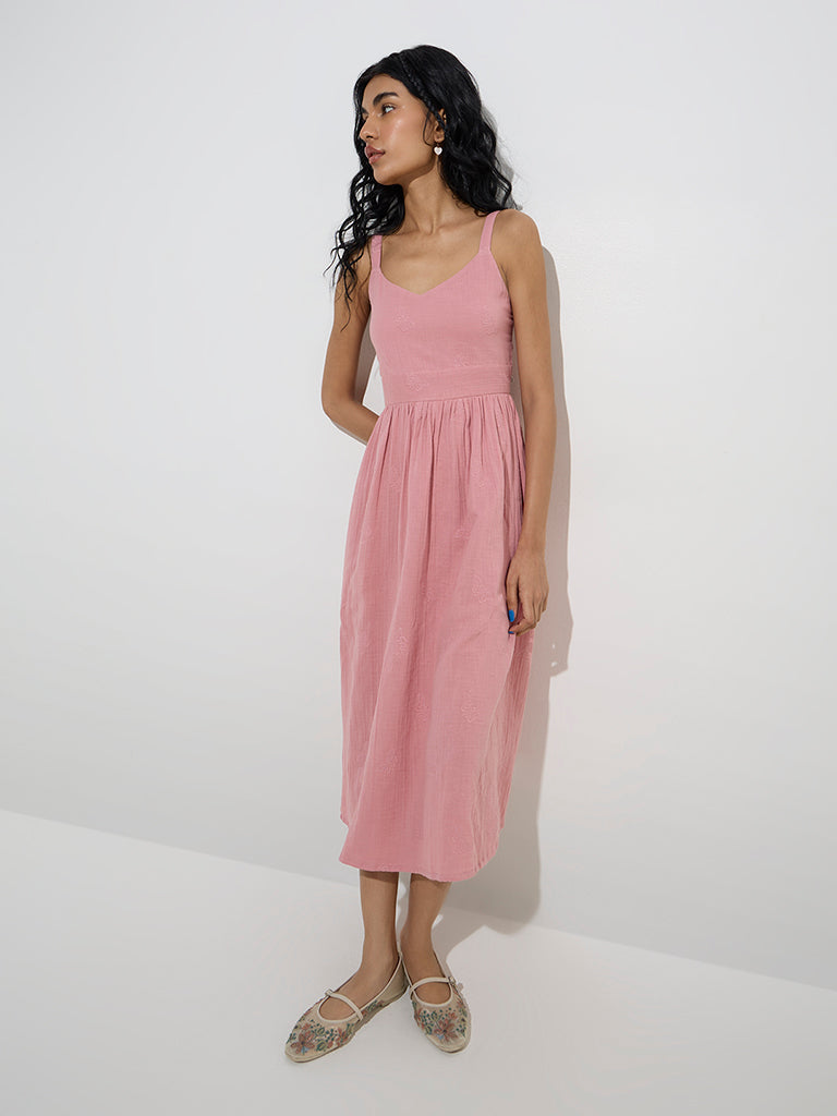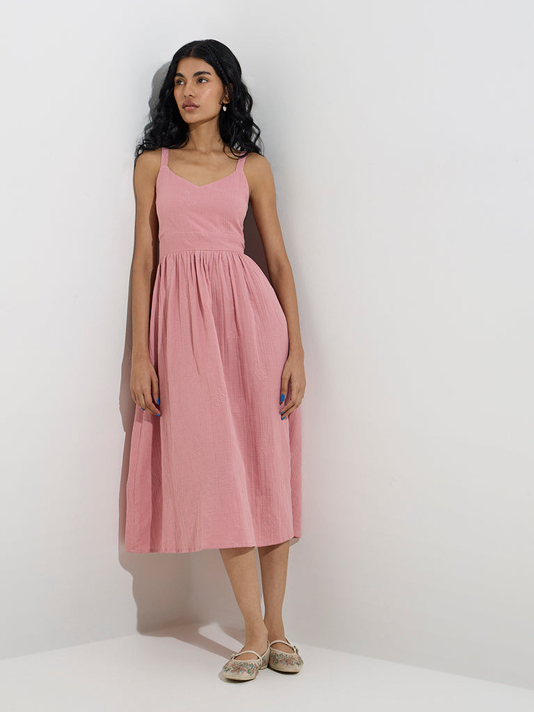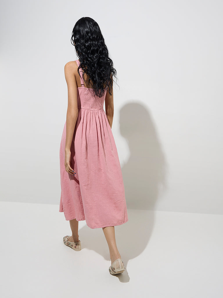 Bombay Paisley Dusty Pink Embroidered Cotton A-Line Dress