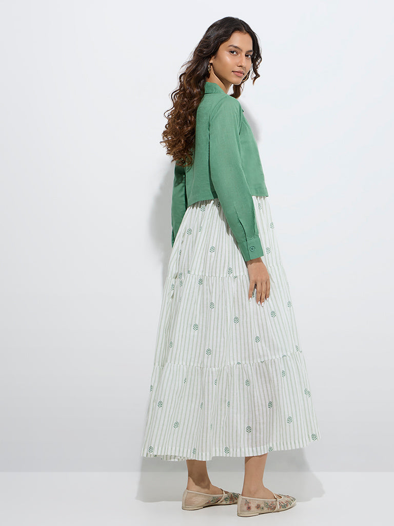 Bombay Paisley Green Cotton Tiered Dress with Jacket
