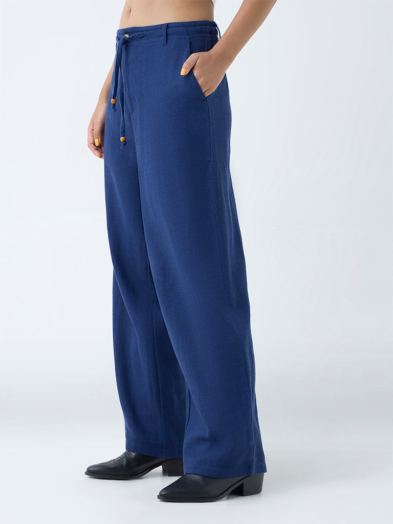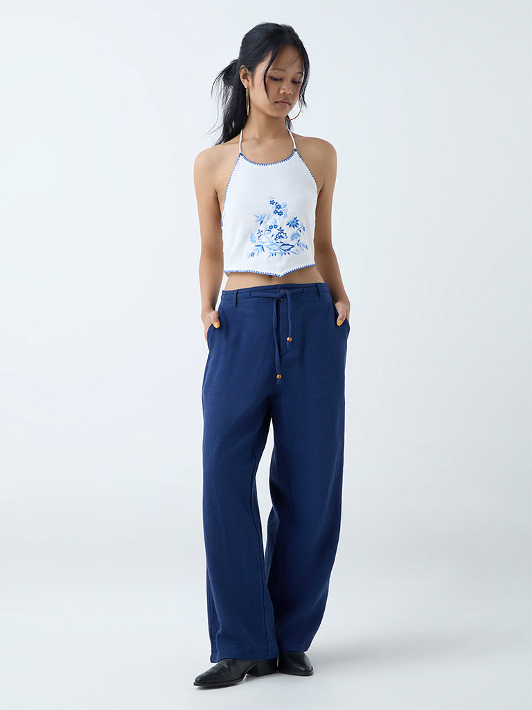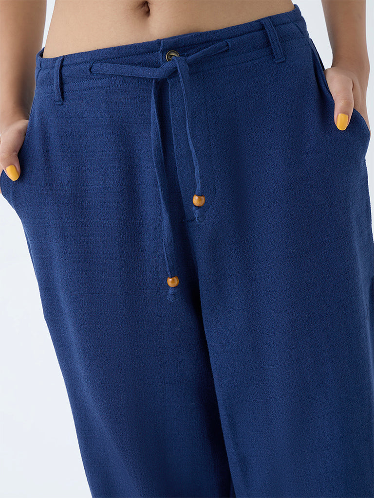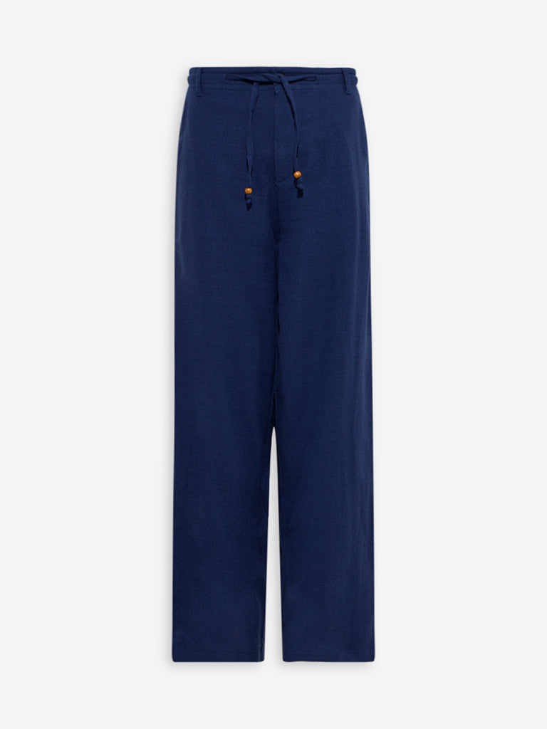 These indigo pants from Bombay Paisley echo effortless drapes with a contemporary edge. Woven from a cosy cotton-blend fabric. they feature a clean silhouette with an adjustable drawstring waistband for a comfortable fit. Multiple pockets complete the look with a touch of practical detail.