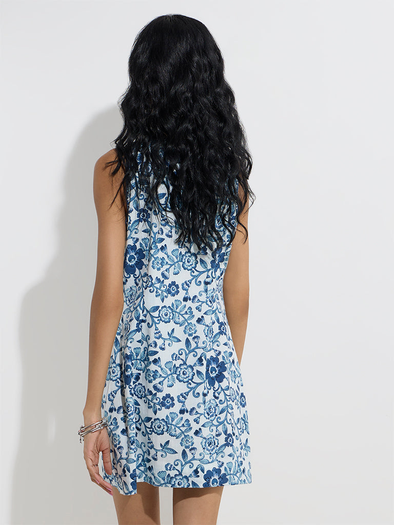 Bombay Paisley Indigo Floral Patterned Cotton A-Line Dress