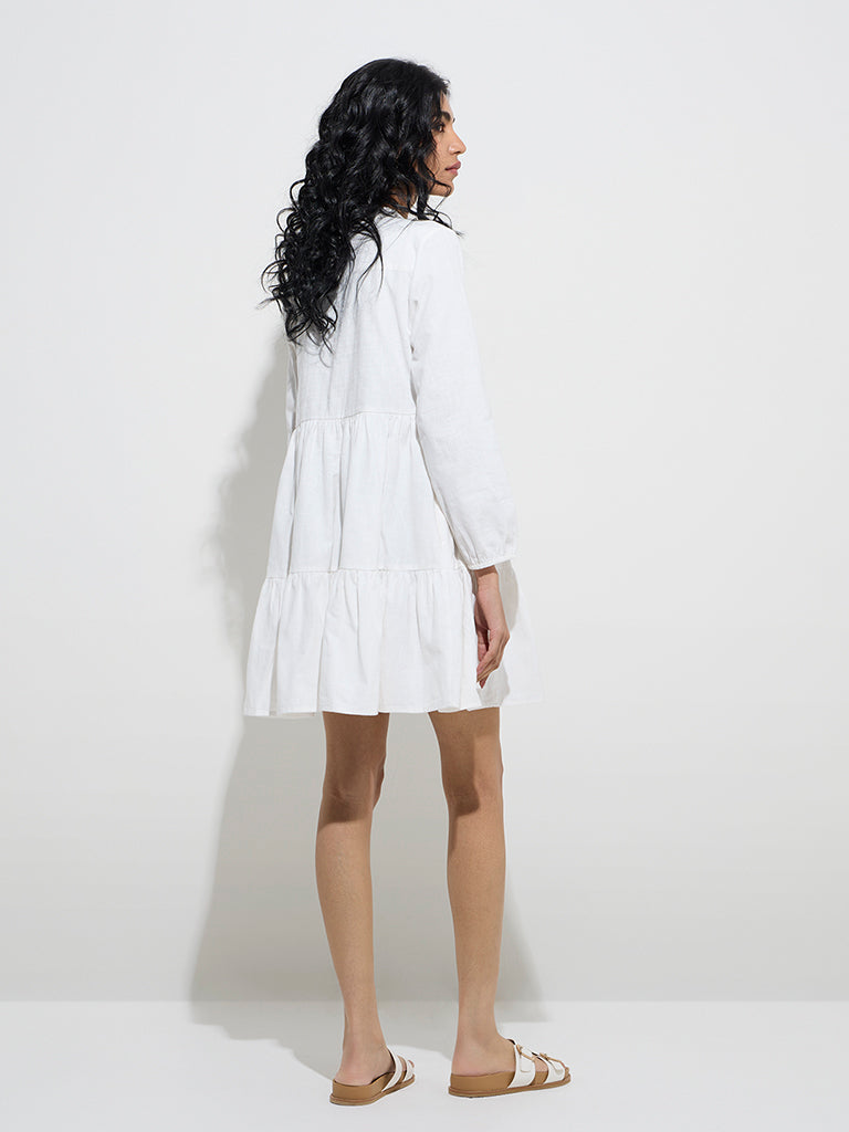 Bombay Paisley Ivory Embroidered Cotton Tiered Dress