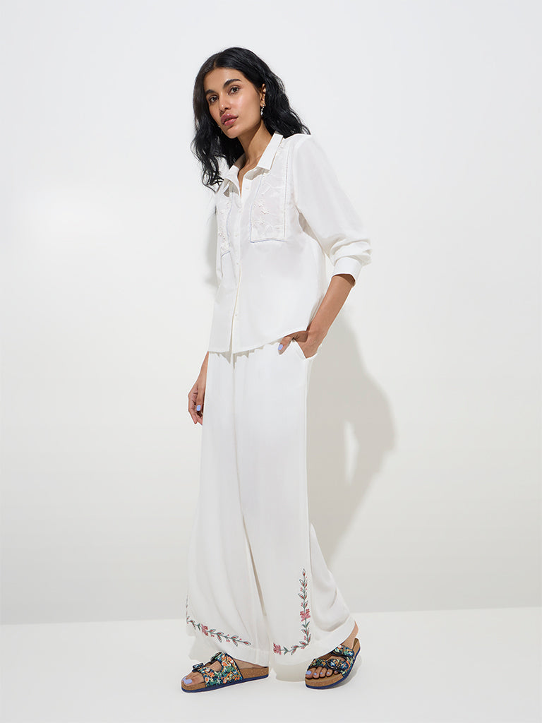 Bombay Paisley Ivory Floral Embroidered Cotton Shirt