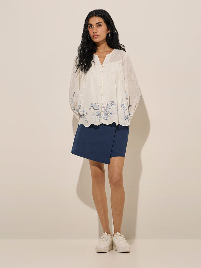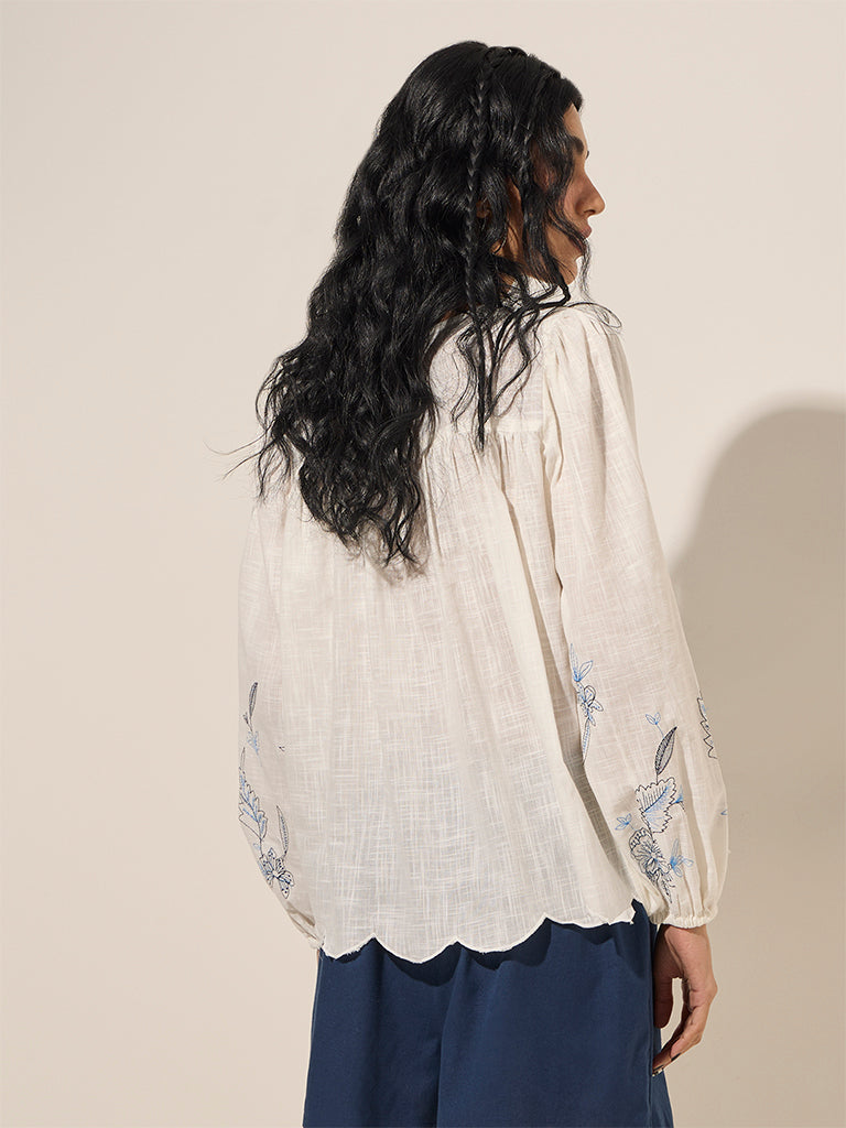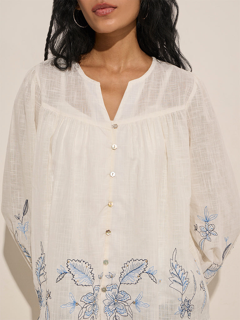 Bombay Paisley Ivory Floral Embroidered Cotton Top