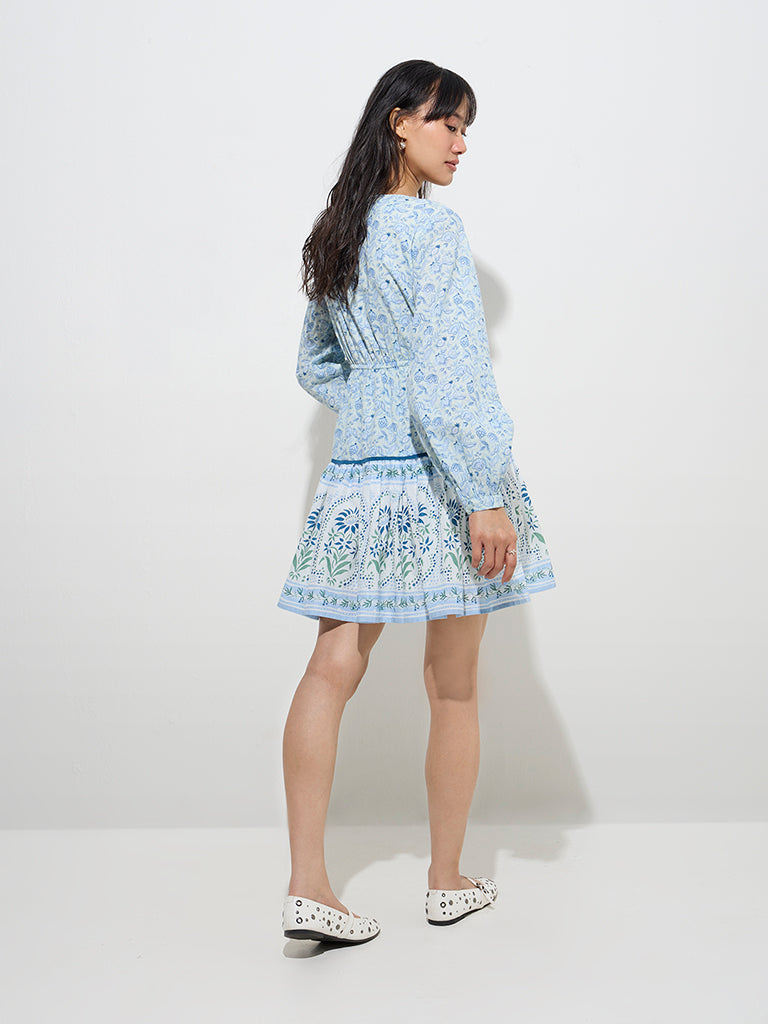 Bombay Paisley Light Blue Floral A-Line Cotton Dress