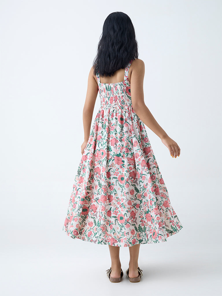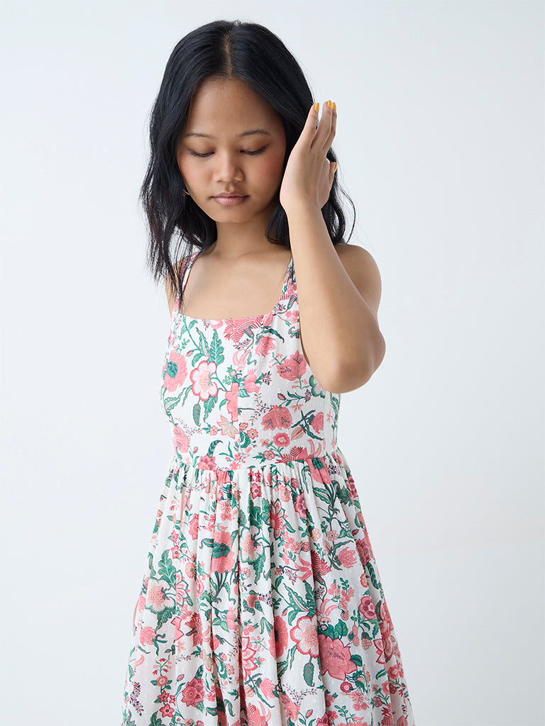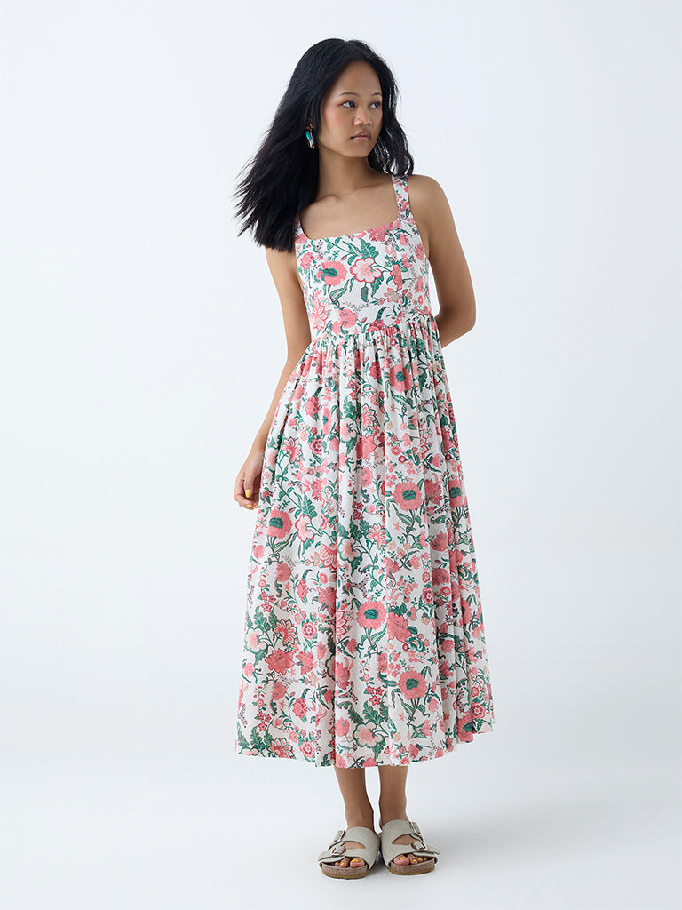 Shaped in A-line dress silhouette. this multicolour dress from Bombay Paisley brings a burst of vibrance with its lively floral print. Created from a rich cotton-blend fabric that offers enhanced breathability. it includes a square neck and adjustable shoulder straps for ease and balance. A concealed back zipper finishes the look with a tailored touch.