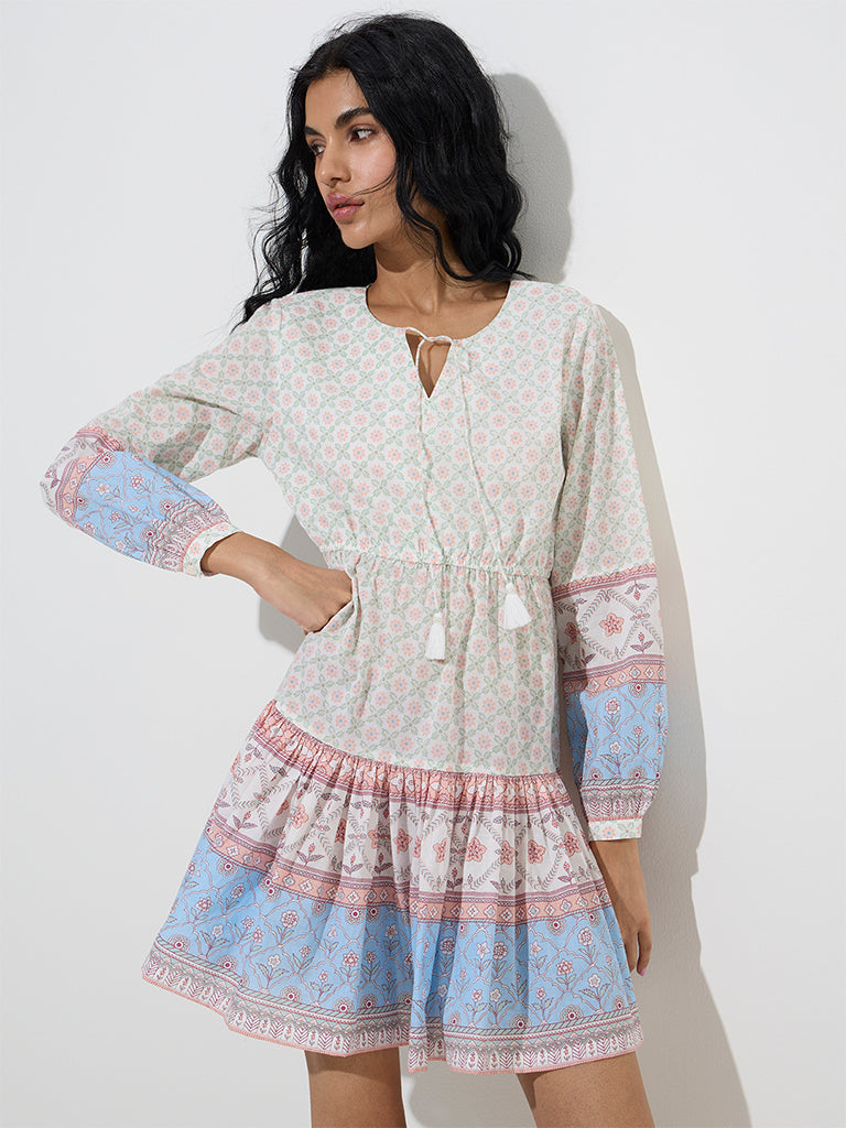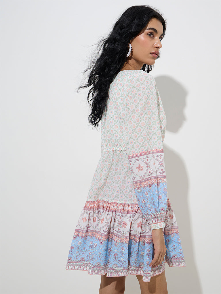 Bombay Paisley Multicolour Floral Cotton A-Line Dress