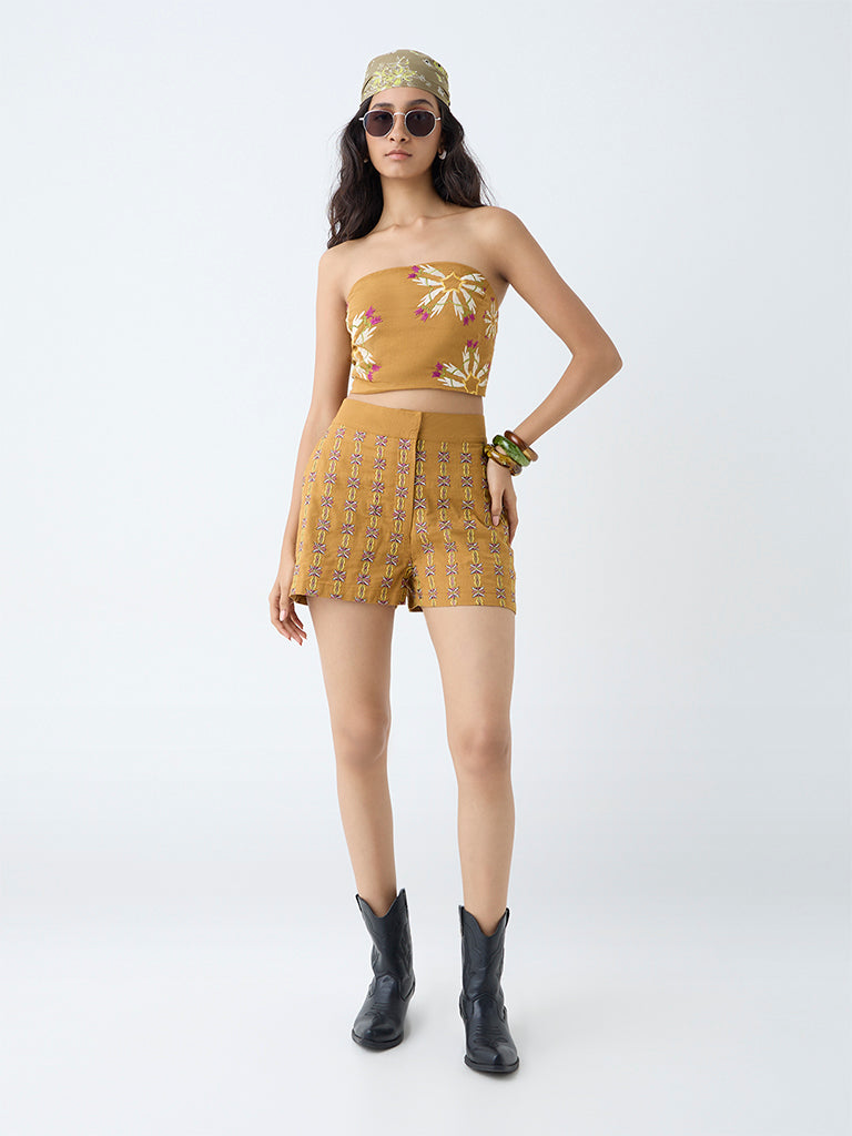 Bombay Paisley Mustard Embroidered Cotton-Blend Tube Top