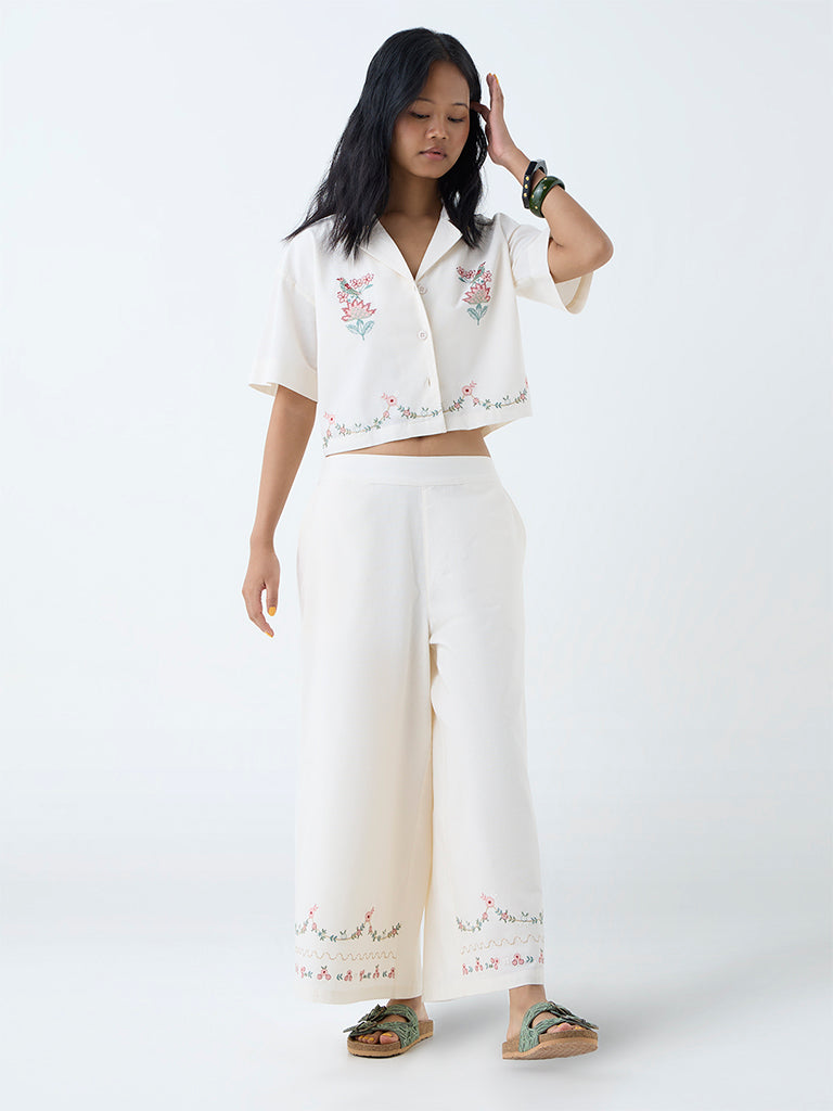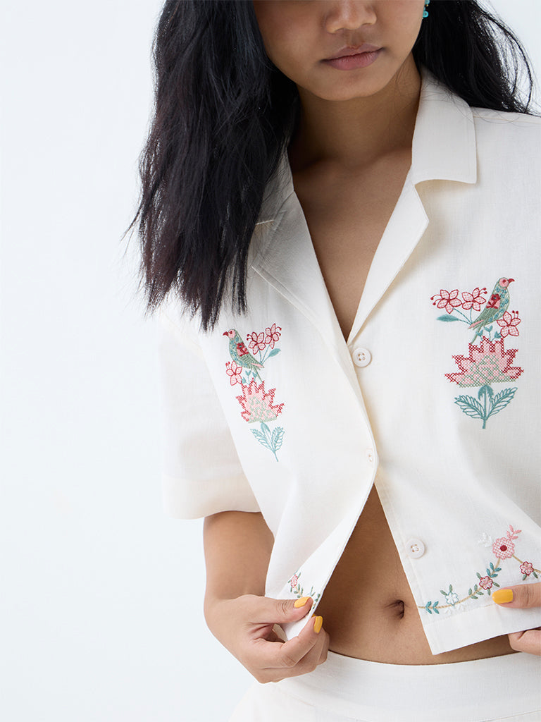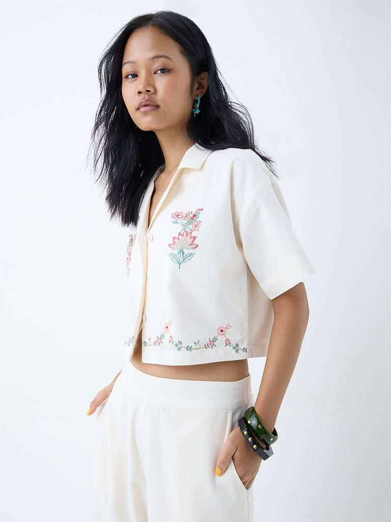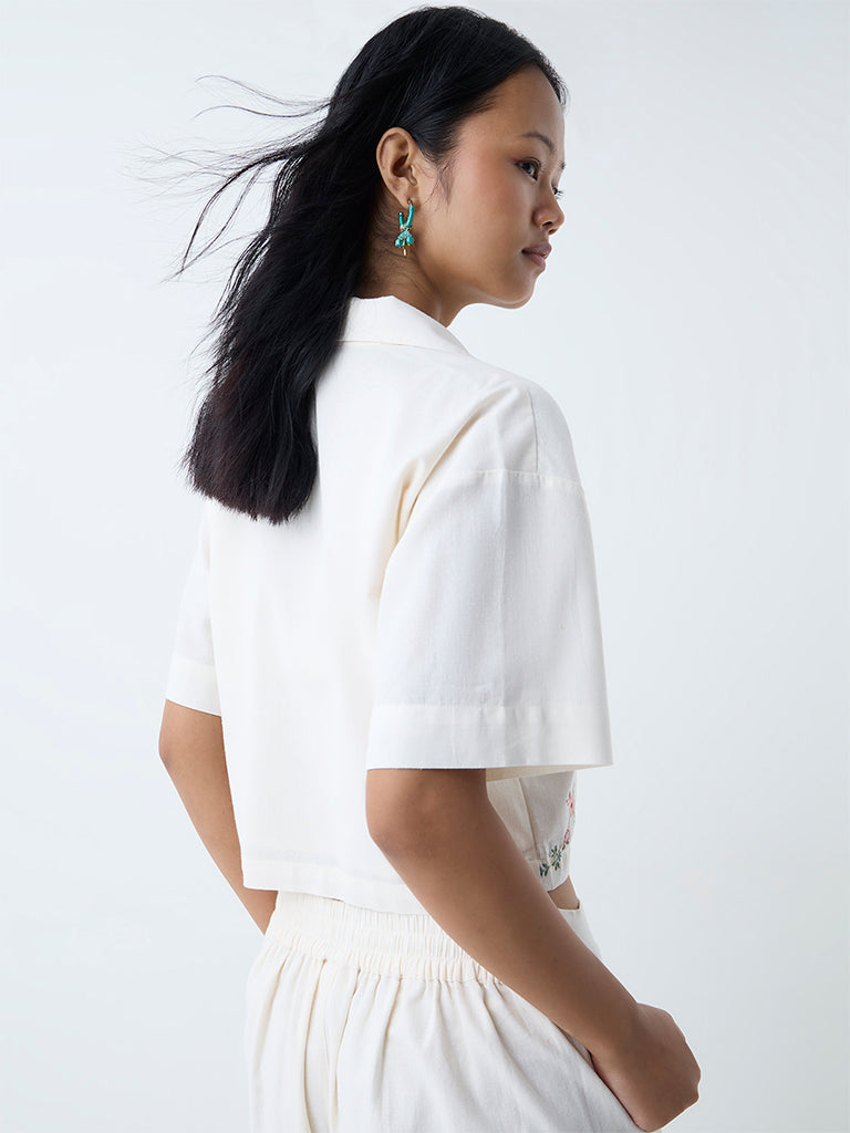 Bombay Paisley Off-White Floral Embroidered Cotton-Blend Shirt