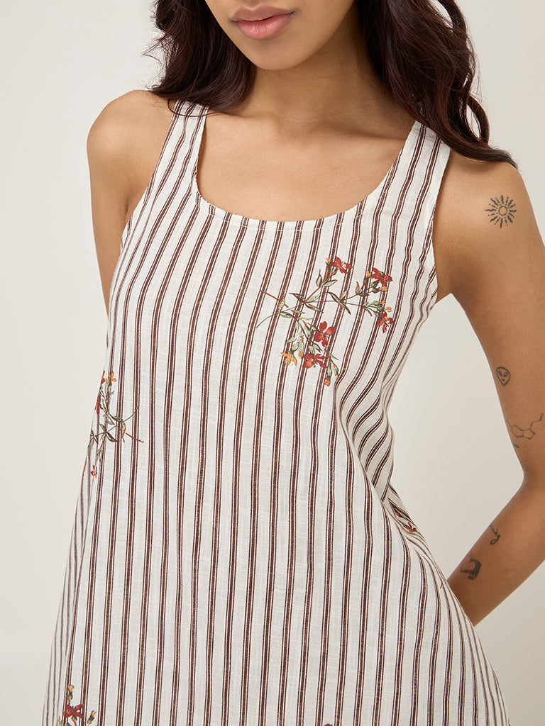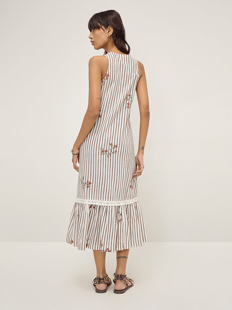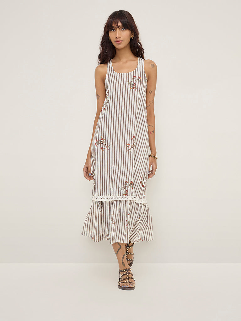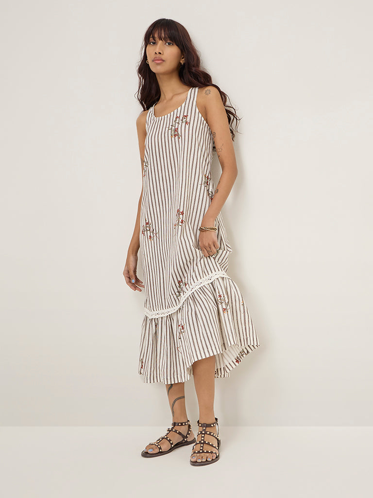 Bombay Paisley Off-White Striped Drop Waist Cotton-Blend Dress