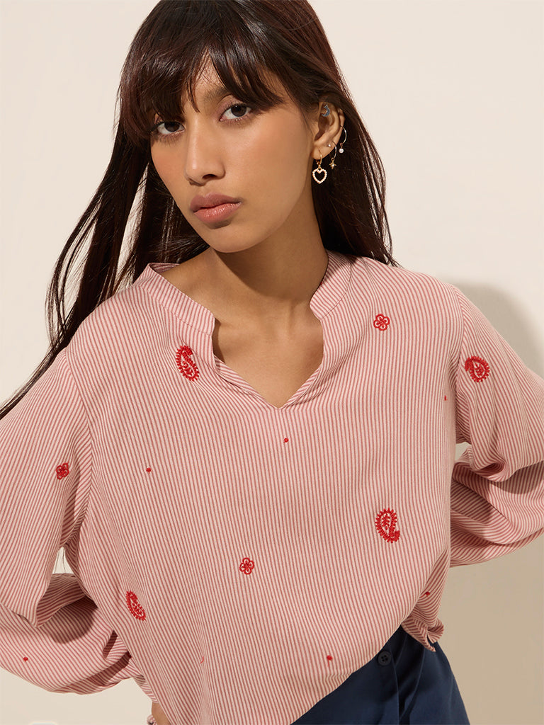 Bombay Paisley Pink Paisley Embroidered Cotton Top